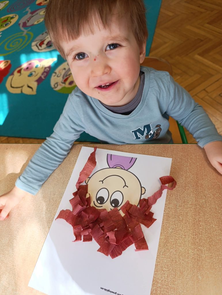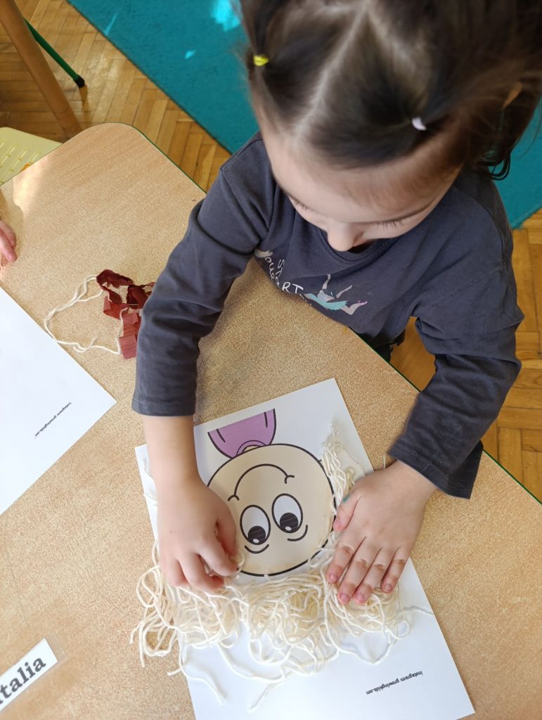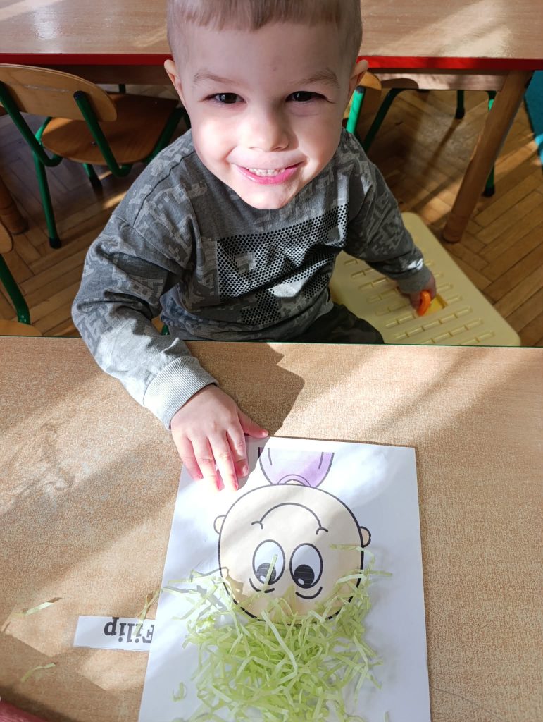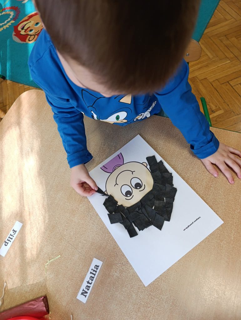 Podczas zajęć dzieci poznawały różne zawody i rozmawiały o tym, czym zajmują się dorośli w swojej pracy. Przedszkolaki z radością bawiły się w salon fryzjerski, wcielając się w rolę fryzjerów i tworząc ciekawe fryzury. W części plastycznej projektowały różne fryzury, przyklejając na kartkach różnorodne materiały. Zajęcia dostarczyły dzieciom dużo radości i twórczej zabawy.