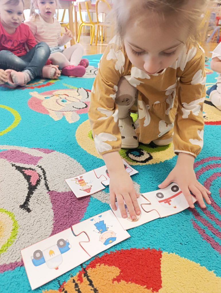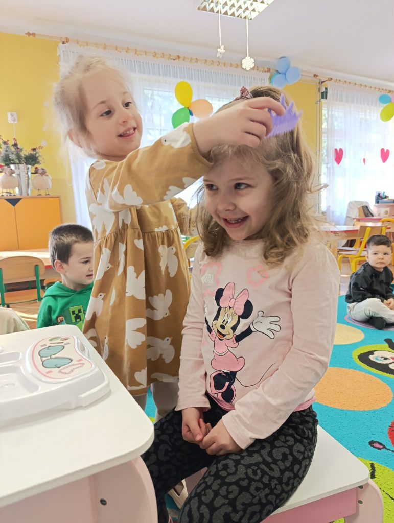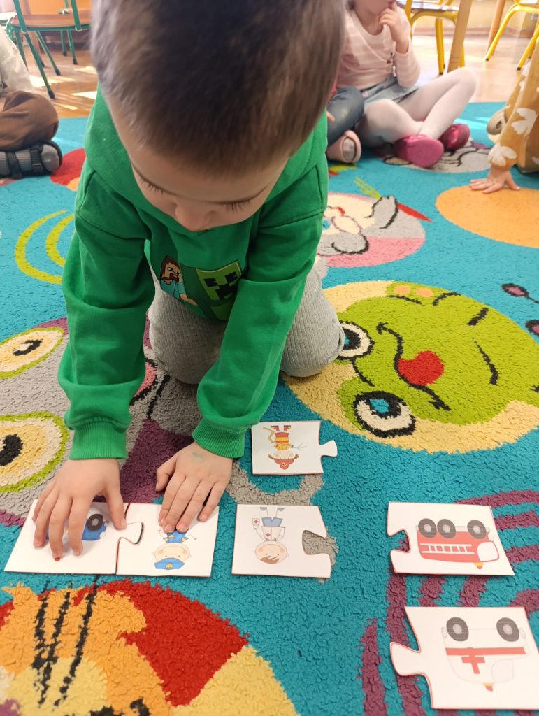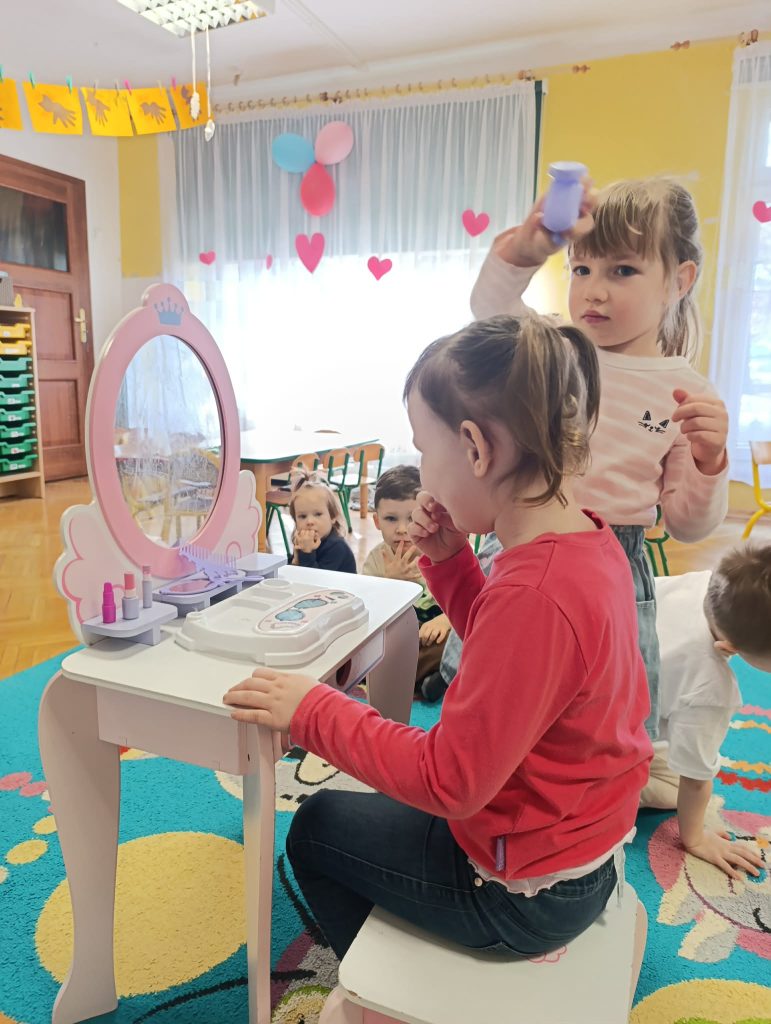Podczas zajęć dzieci poznawały różne zawody i rozmawiały o tym, czym zajmują się dorośli w swojej pracy. Przedszkolaki z radością bawiły się w salon fryzjerski, wcielając się w rolę fryzjerów i tworząc ciekawe fryzury. W części plastycznej projektowały różne fryzury, przyklejając na kartkach różnorodne materiały. Zajęcia dostarczyły dzieciom dużo radości i twórczej zabawy.