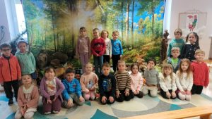 W ramach zajęć edukacyjnych dzieci z naszego przedszkola wzięły udział w wyjątkowym wyjściu do Muzeum Podlaskiego – Ratusz, gdzie uczestniczyły w warsztatach malarskich pt. „Boże Narodzenie – martwa natura”. Podczas zwiedzania muzeum przedszkolaki z dużym zaangażowaniem poszukiwały dzieł sztuki przedstawiających poszczególne pory roku, ucząc się uważnej obserwacji i odkrywając, jak