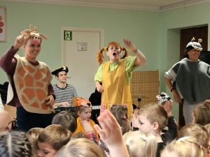 Bajkowa audycja muzyczna rozgrzała dziś całe przedszkole nawet Panie. Wspólnie śpiewaliśmy, tańczyliśmy i z niecierpliwością czekamy na kolejne muzyczne i teatralne przygody.