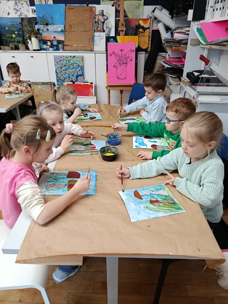 Za nami pierwsze warsztaty plastyczne w Galerii Sleńdzinskich. Spotkanie poprowadziła pani Jowita, która krok po