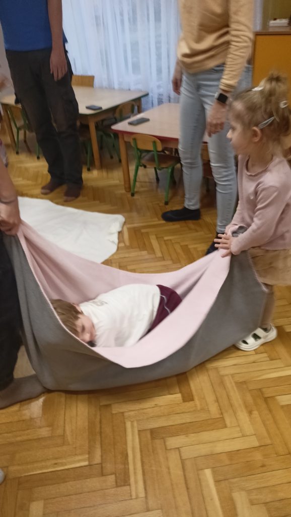 We środę odbyły się zajęcia otwarte podczas których spędziliśmy wspaniały czas na zabawach ruchowych z rodzicami. Naszym atrybutem był koc , wyobraznia , dobry humor i chęć spędzenia czasu na wspólnej zabawie. Udaliśmy się więc w podróż na nieznana wyspę. Zapraszamy na kolejne spotkanie!