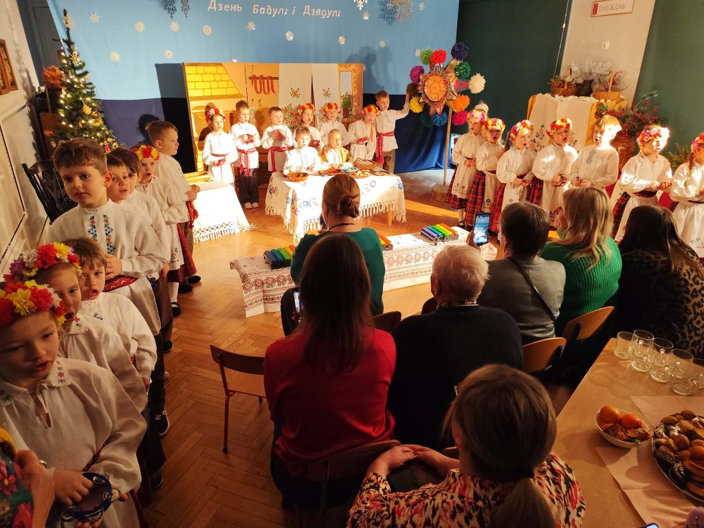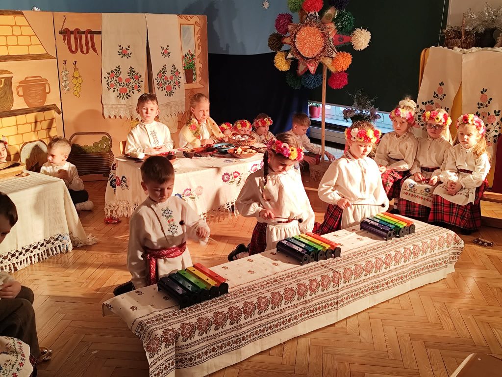 W przepięknej scenografii oraz wyjątkowej atmosferze, wnuczęta wspaniale wystąpiły przed bliskimi w przedstawieniu „Kalady”. Zaprezentowali również piosenki oraz tańce, które ćwiczyły na tą uroczystość. Każdy wnuczek i każda wnuczka wręczyła swoim dziadkom upominek przez siebie wykonany. Następnie przedszkolaki zaprosiły Babcie i Dziadków na słodki poczęstunek przygotowany przez Rodziców, aby w szczególny sposób okazać swoim bliskim szacunek i po raz kolejny podziękować za miłość, cierpliwość i zrozumienie.