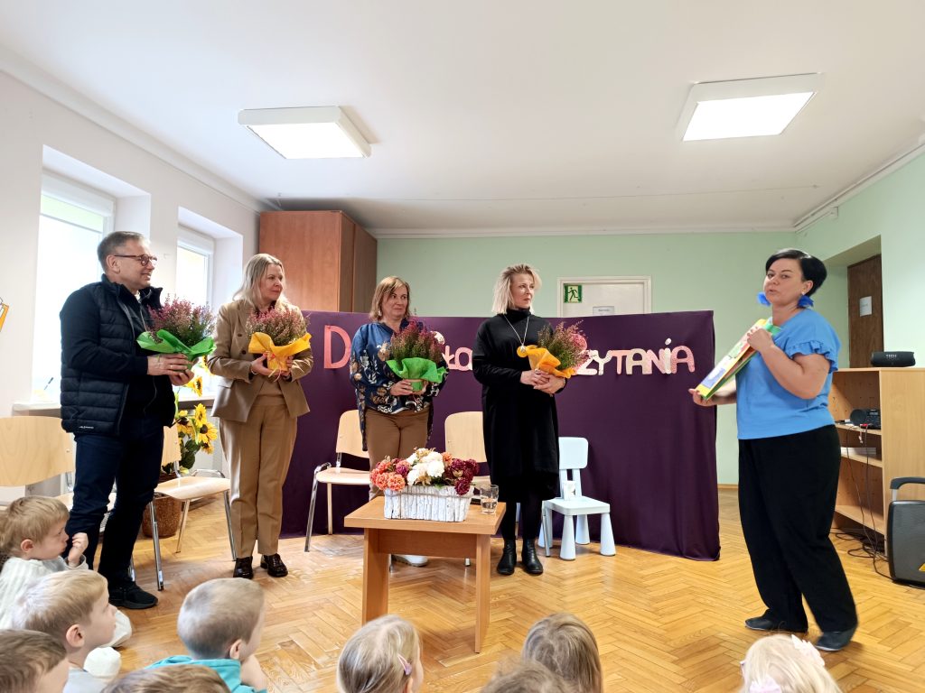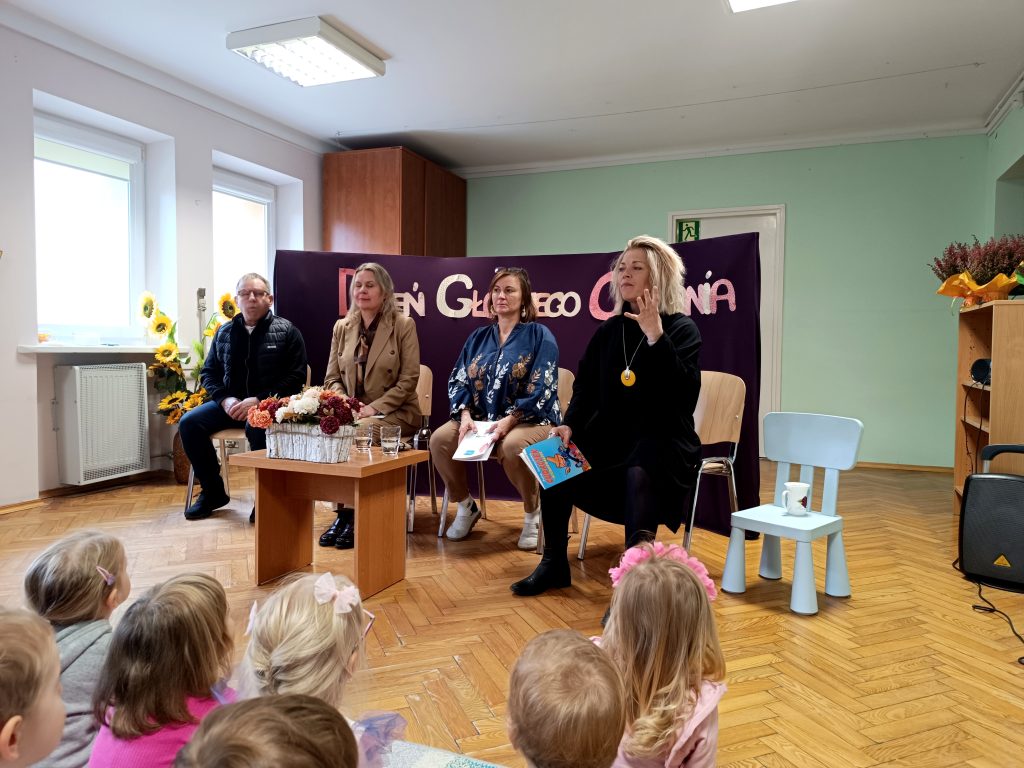 W poniedziałek zaraz po śniadaniu mieliśmy przyjemność wziąć udział w cudownym spotkaniu z wyjątkowymi gośćmi i przede wszystkim spotkaniu z Książką – a dokładnie z przygodami Cudaczka Wyśmiewaczka.