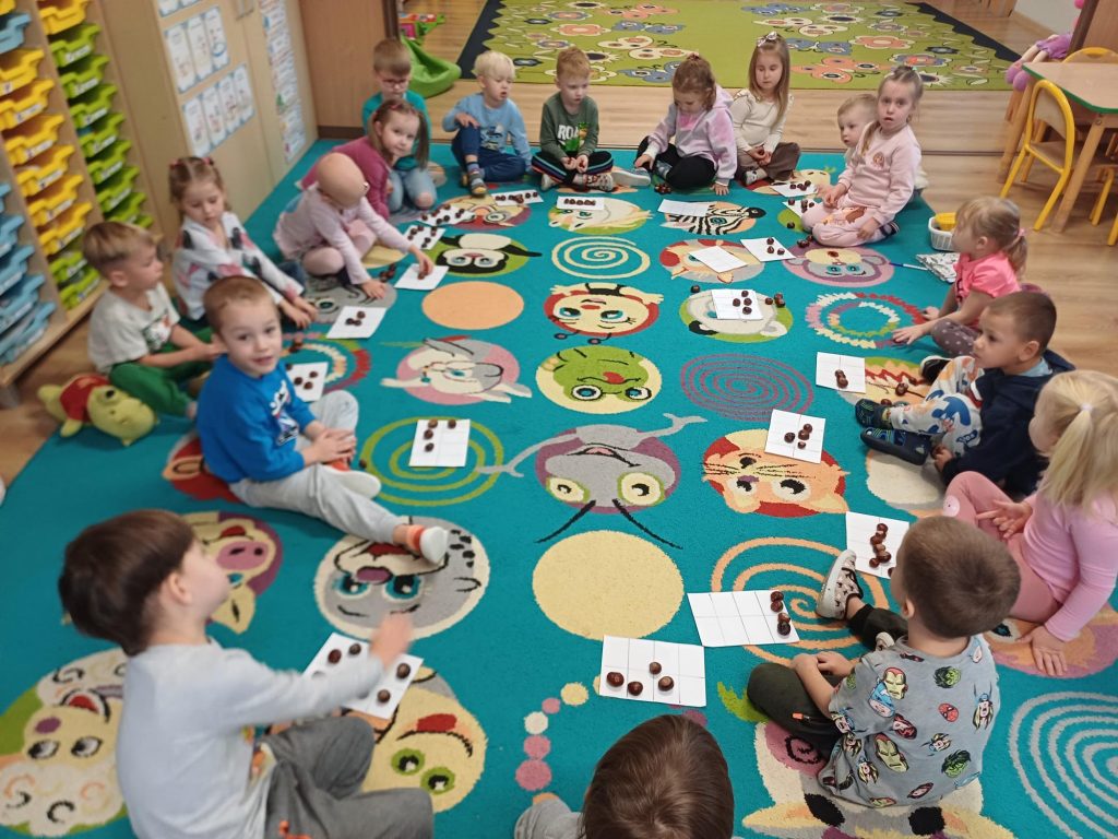 Dzień Kasztana symbolizuje nadejście jesieni i bogactwa natury. Dziś liczyliśmy, rzucaliśmy do celu i ćwiczyliśmy razem kasztanami z naszego kącika przyrody.
