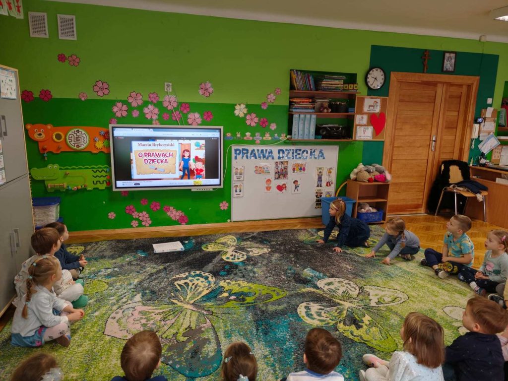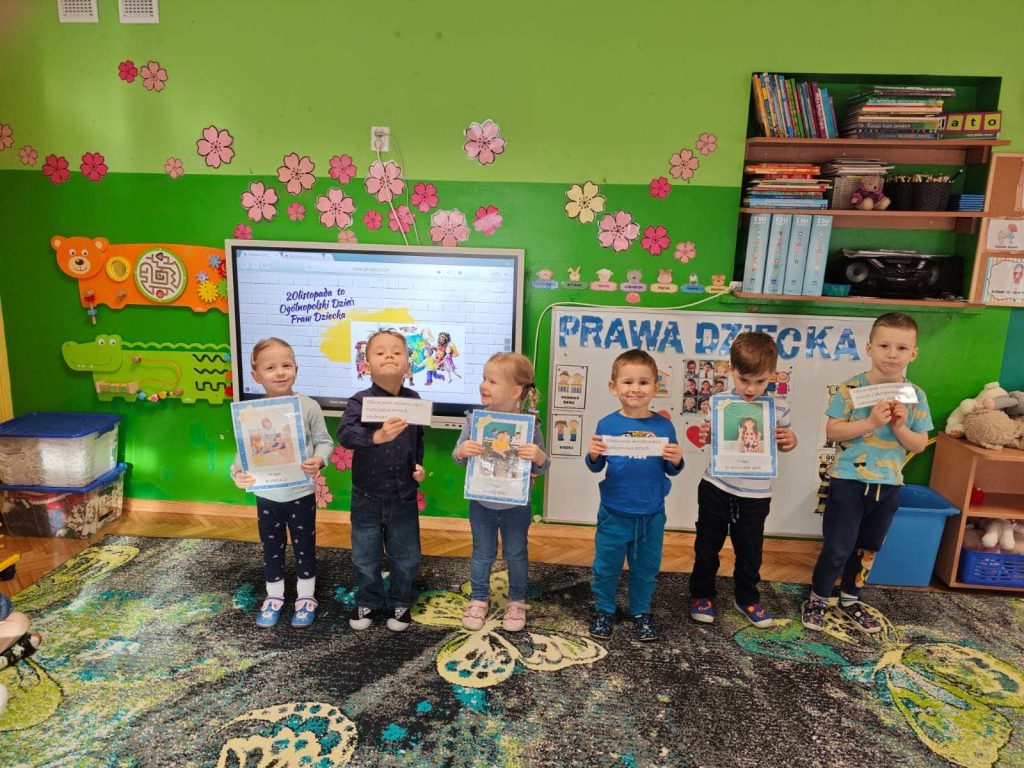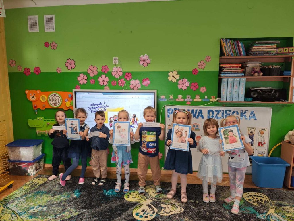 W środę 20 listopada w ramach akcji organizowanej przez UNICEF obchodziliśmy Międzynarodowy Dzień Praw Dziecka. Dzieci w tym dniu przyszły ubrane na niebiesko, jako symbol solidarności ze wszystkimi dziećmi na świecie. Celem przeprowadzonych zajęć było kształtowanie u dzieci świadomości ich własnych praw, uczenie poszanowania praw innych i radzenia sobie w sytuacjach naruszania własnych praw.