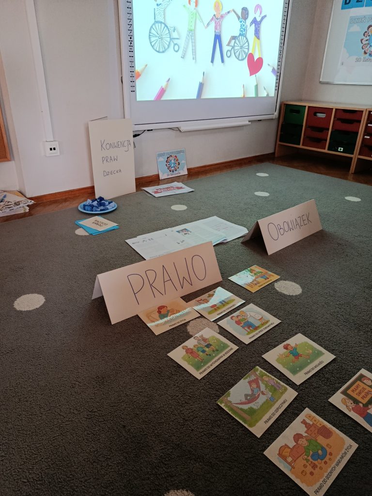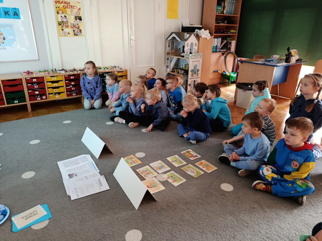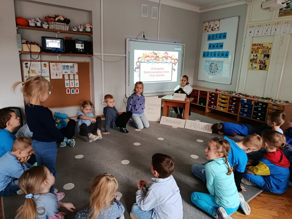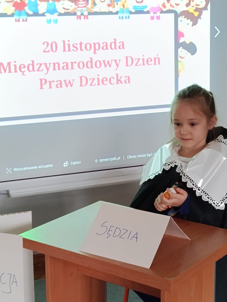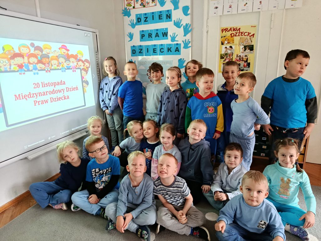 Dzisiaj obchodziliśmy Międzynarodowy Dzień Praw Dziecka. Ten dzień miał na celu uświadomienie dzieciom jakie prawa (o obowiązkach nie zapomnieliśmy ;)) mają dzieci oraz które są zapisane w Konwencji o Prawach Dziecka. Przedszkolaki uczestniczyły w zajęciach, oglądały prezentacje, wykonały prace plastyczną. To właśnie dzisiaj ubraliśmy się na niebiesko (symbol solidarności z dziećmi na świecie). Ciekawą zabawą była zabawa w sąd. Dzieci samodzielnie oceniały czy ktoś z dorosłych złamał prawo czy postąpił słusznie. Poprzez dzisiejsze zajęcia dzieci poznały swoje prawa, takie jak prawo do radości, nauki, szacunku czy zabawy.