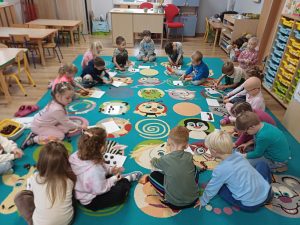 Zajęcia matematyczne rozwijające orientuję przestrzenną to aktywności, które pomagają dzieciom zrozumieć pozycję obiektów i relacje między nimi w przestrzenie. U nas zabawa z krzesłami, a dzieci pod, na, obok krzesła.