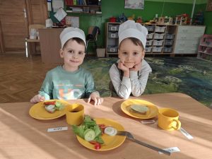 Do przedszkola chętnie chodzimy. Tu wiele rzeczy się uczymy. Jak być zdrowym, już każdy wie. Dlatego dużo teraz je!