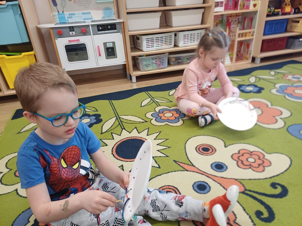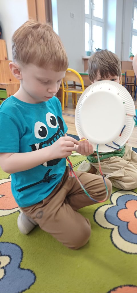 Igła, nitka rączek parę i uszyty fartuch cały. Przedszkolaki uczą się posługiwać igła.