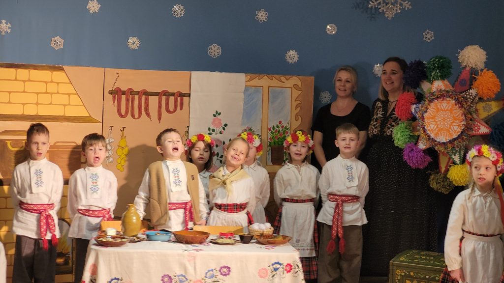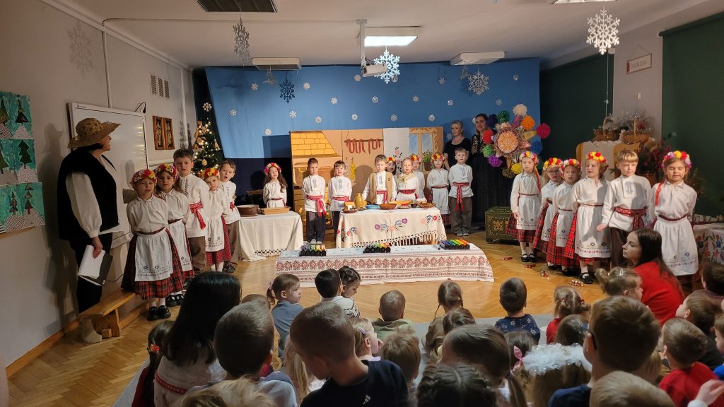 Występ symbolizował Wigilię oraz tradycję kolędowania z gwiazdą, ukazując piękno podlaskich zwyczajów bożonarodzeniowych. Mali artyści z ogromnym zaangażowaniem wcielili się w swoje role, prezentując wzruszające sceny pełne ciepła, radości i wspólnoty. Szczególnym elementem przedstawienia był akompaniament dzieci na dzwonkach chromatycznych, który nadał całości uroczysty i nastrojowy charakter. W przedstawieniu pojawił się również wędrownik, symbolizujący drogę, poszukiwanie i otwartość na drugiego człowieka.