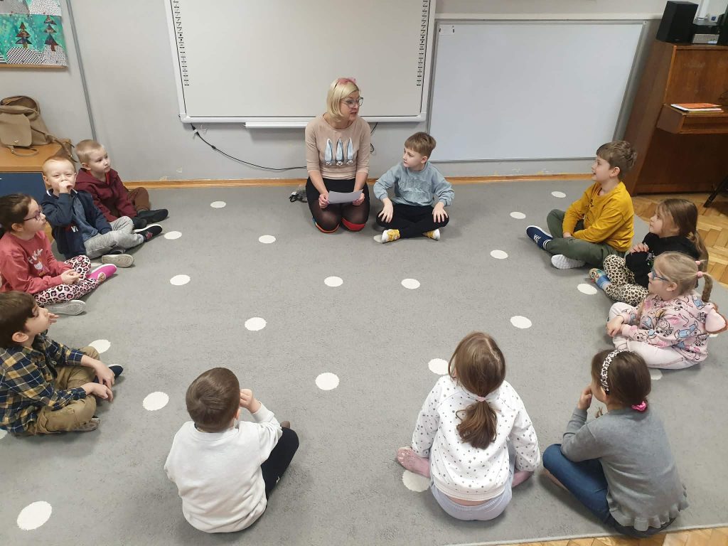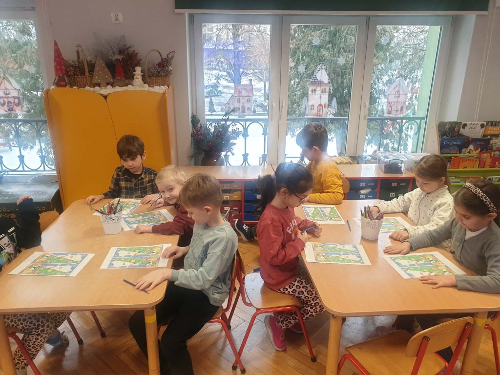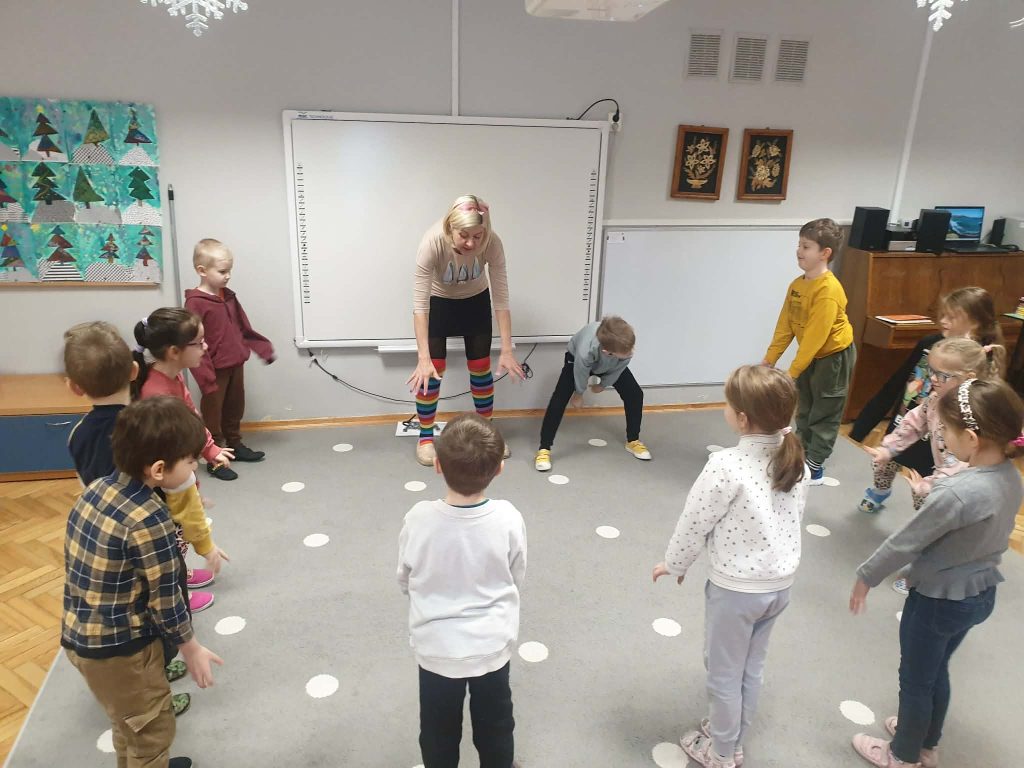 Dnia 26.01.2026r. nasza grupa wzięła udział w zajęciach terapeutycznych prowadzonych przez pedagog p. Marzankę. Spotkanie przebiegało w radosnej i twórczej atmosferze. Dzieci wysłuchały opowieści o karnawale obchodzonym w różnych miejscach świata, poznając ciekawe tradycje, stroje i zwyczaje związane z tym wyjątkowym czasem. Dzieci rozwiązywały zagadki o tematyce karnawałowej, brały udział w wesołej zabawie z miotłą oraz wykonywały kartę pracy, doskonaląc koncentrację i sprawność manualną.
