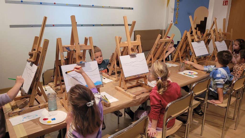 To były bardzo ciekawe i inspirujące zajęcia, przedszkolaki po raz pierwszy zobaczyły prawdziwą galerię obrazów a niektóre mogły wcielić się w „prawdziwego” malarza. Na pewno nie będą to ostatnie takie zajęcia.