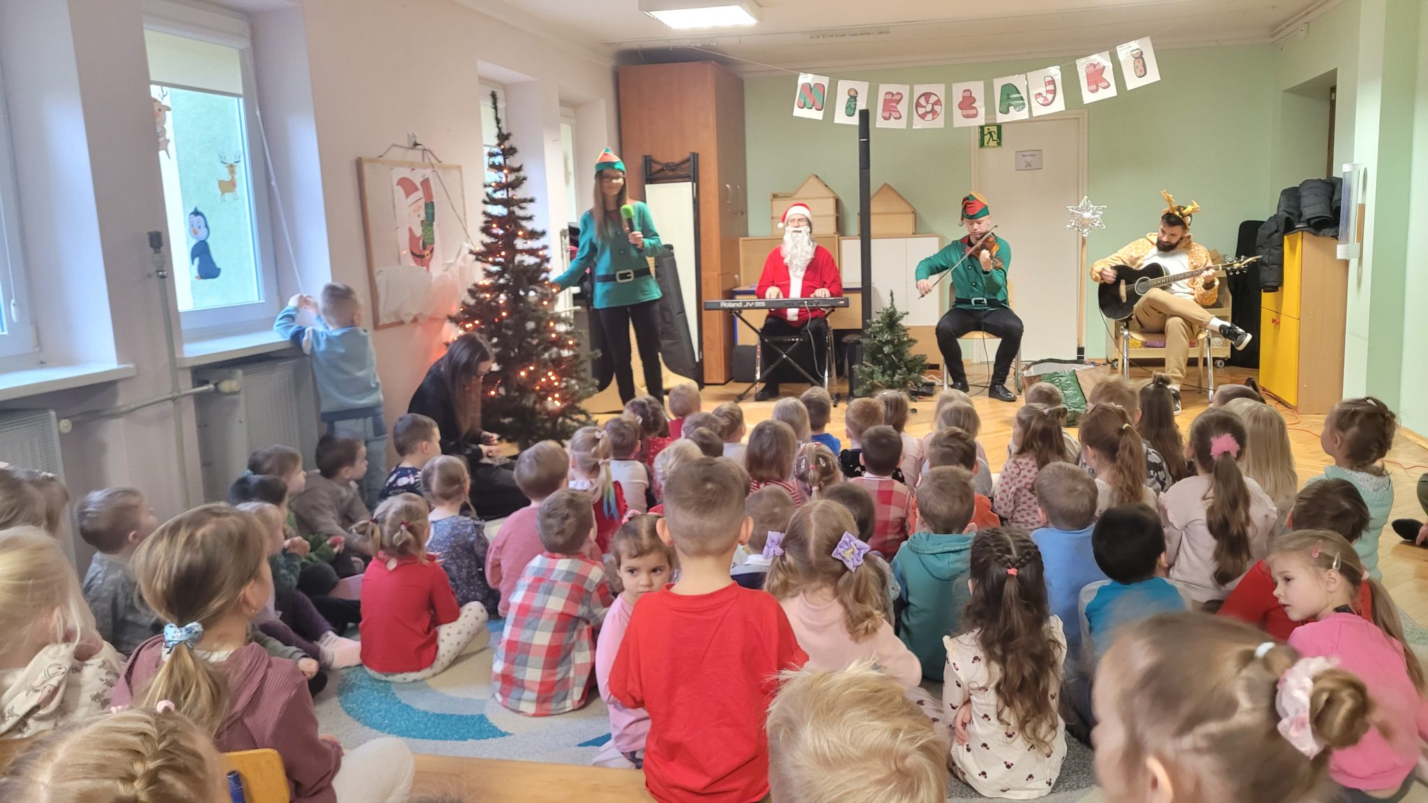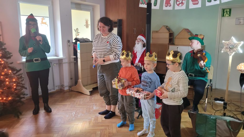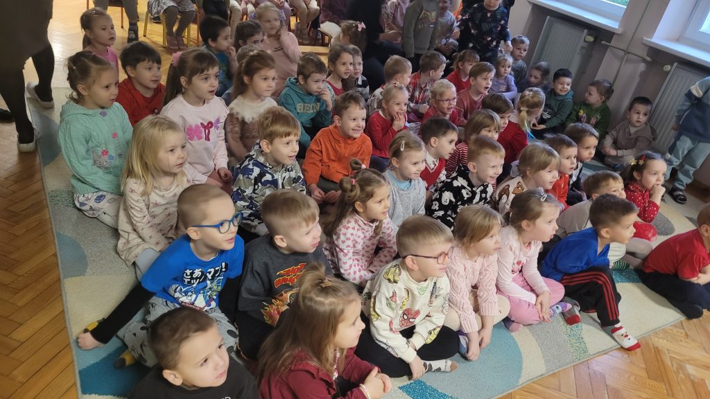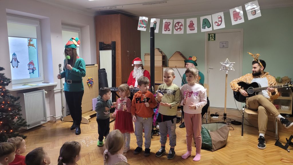 Dzieci z naszego przedszkola wzięły udział w wyjątkowej, świątecznej audycji muzycznej pt. „List do Mikołaja”, przygotowanej przez artystów z zespołu Arte-Muza. Podczas spotkania mali słuchacze mieli okazję wysłuchać pięknych, nastrojowych utworów muzycznych oraz aktywnie uczestniczyć w radosnych zabawach muzycznych, wspólnie śpiewając wraz z artystami.