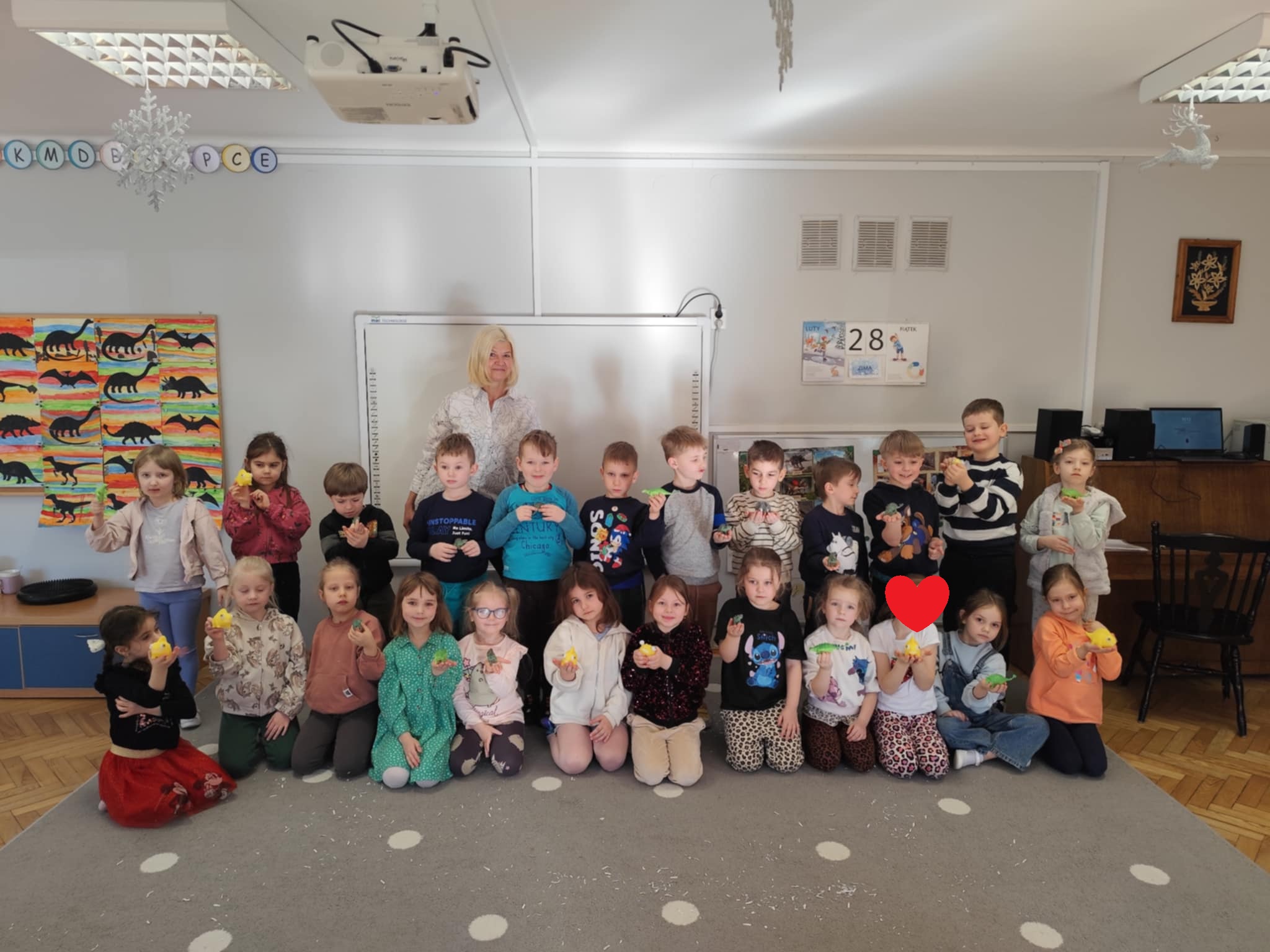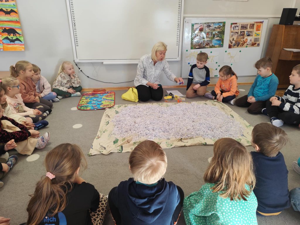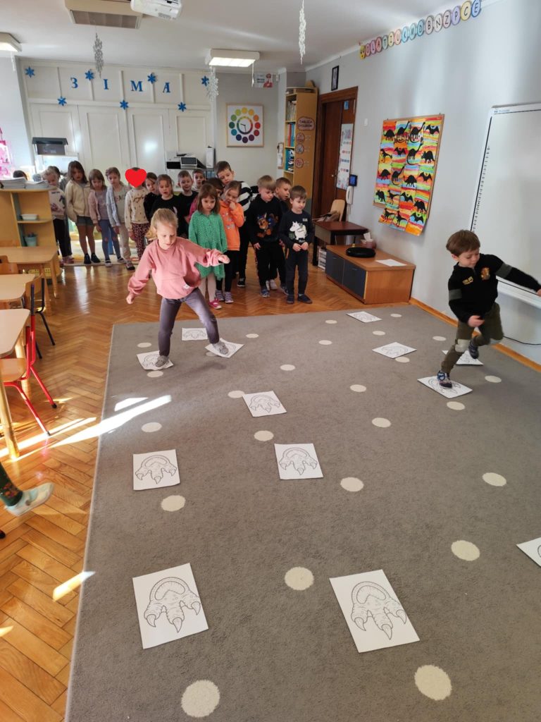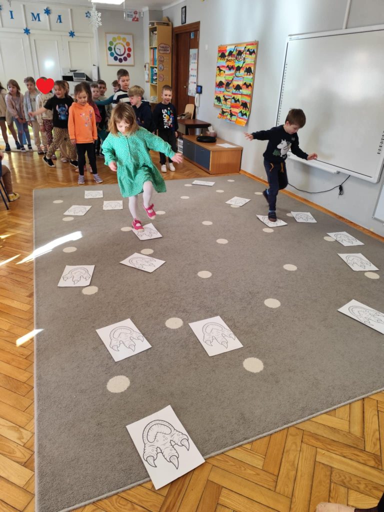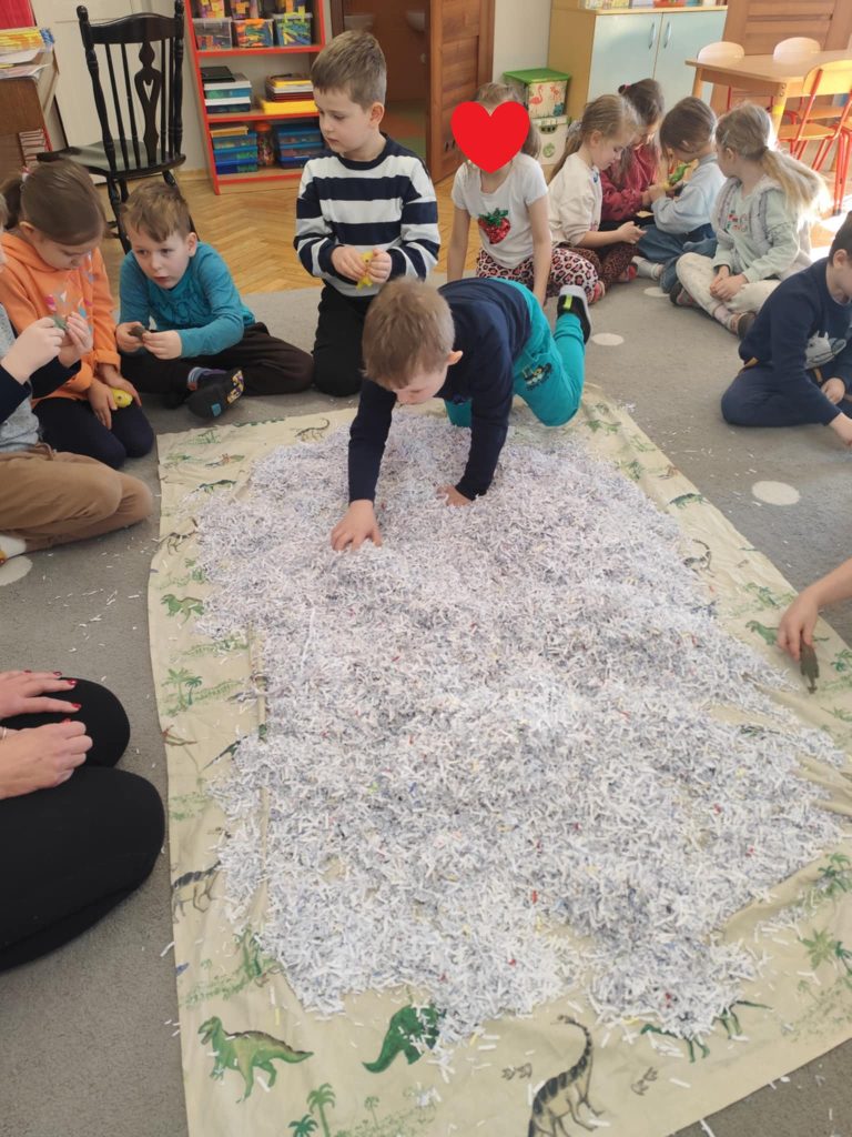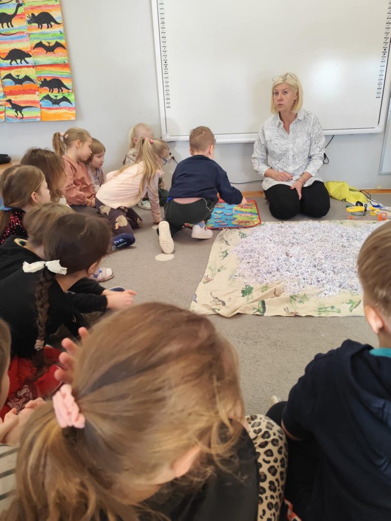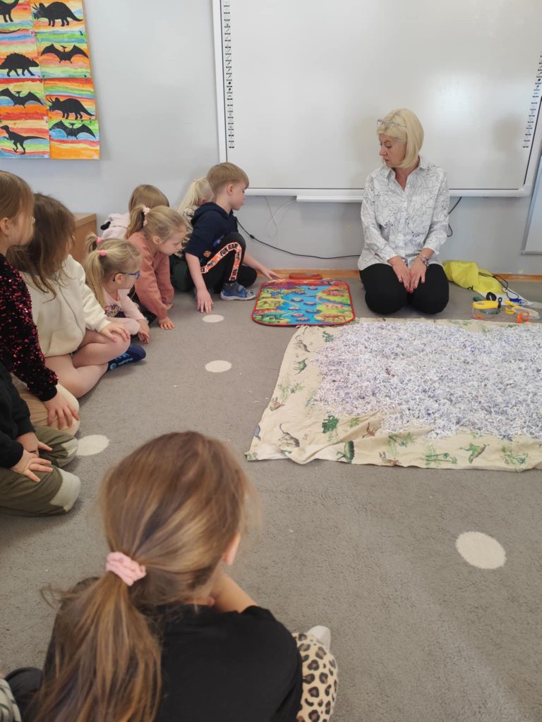 We wtorkowy poranek odwiedziła nas Pani Marzanna, która przeniosła nas do ery w której żyły dinozaury. Podczas zajęć dzieci poznały krótką historię dinozaurów – dowiedziały się, kiedy żyły i jak wyglądał świat sprzed milionów lat. Dzieci poznały i utrwaliły nazwy wielu prehistorycznych stworzeń, wcielając się w rolę małych odkrywców. Pracowały jak prawdziwi archeolodzy – prowadziły wykopaliska i z lupą w ręku odkrywały ukryte dinozaury.