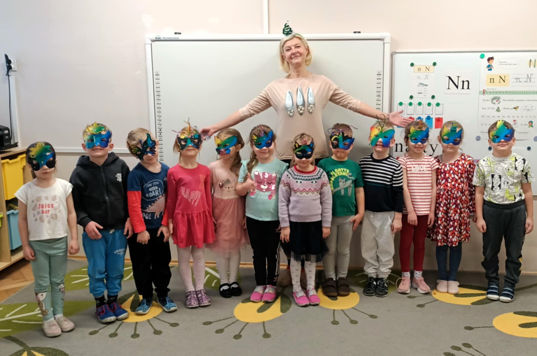 Cyklicznie spotykamy się na zajęciach z panią Marzanną – pedagogiem przedszkola. Dn. 23.01.2026r. tematem spotkania był Karnawał. Dowiedzieliśmy się o różnorodnych tradycjach w różnych częściach świata związanych z tym okresem. Najbardziej ucieszyły nas jednak własnoręcznie wykonane maski karnawałowe.