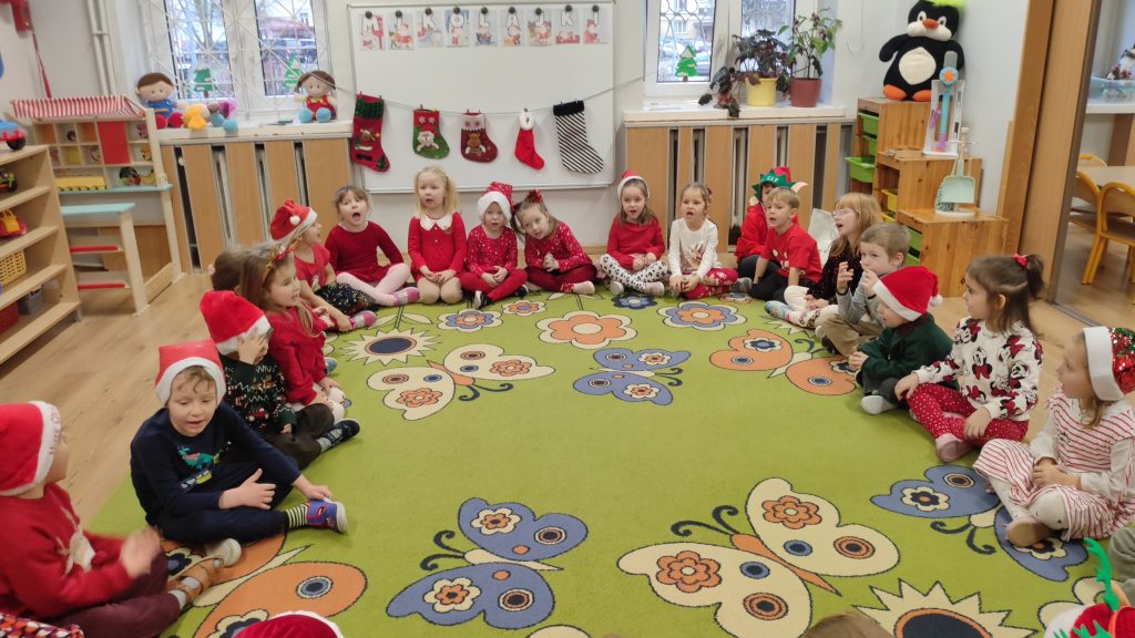 Zwieńczeniem tego radosnego dnia było kino w przedszkolu, gdzie dzieci obejrzały świąteczną bajkę, odpoczywając po pełnym wrażeń poranku.
