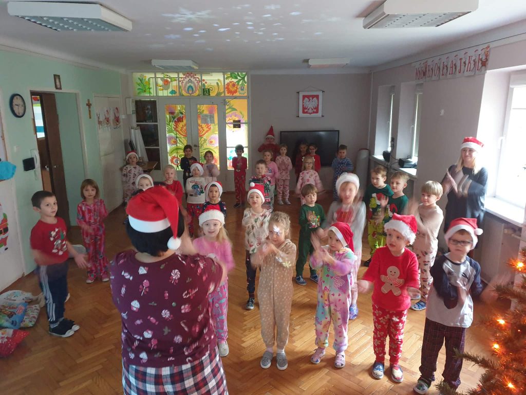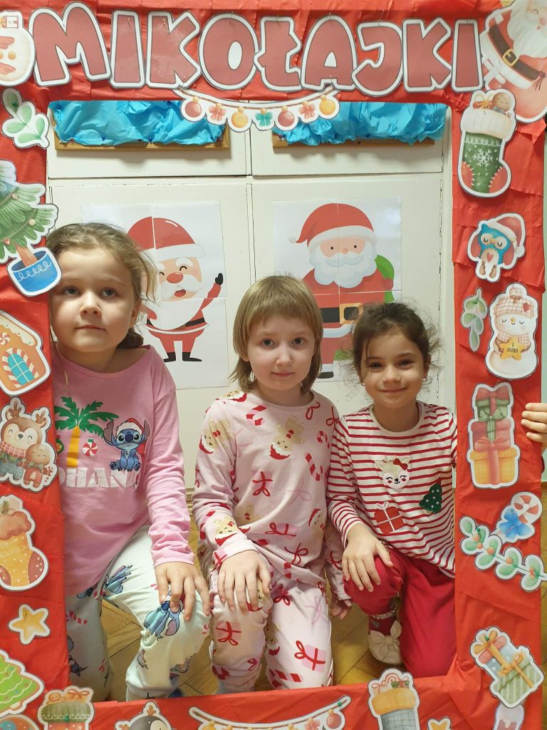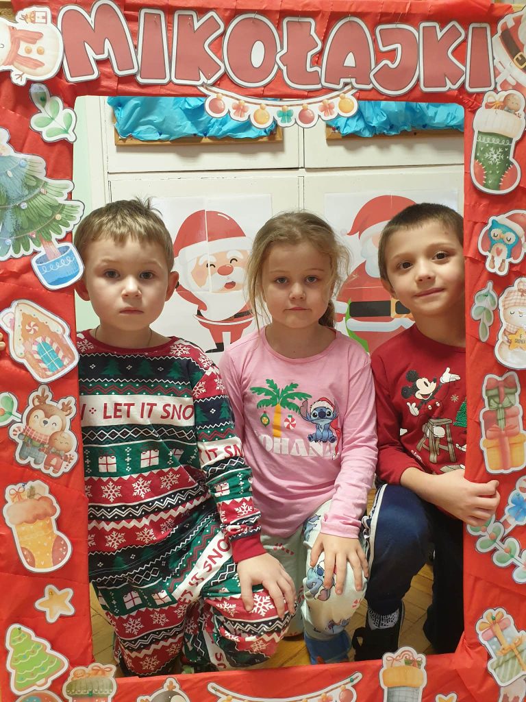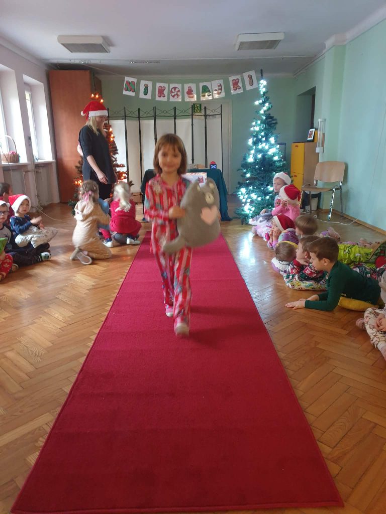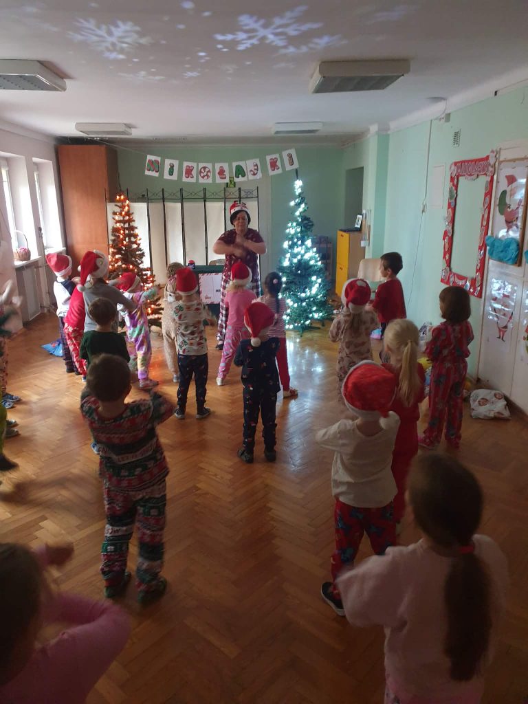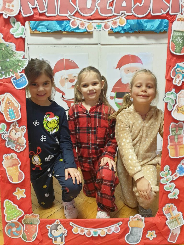 W naszej grupie i grupie V odbyły się w piątek (05.12.2025r.) wyjątkowe Mikołajki w formie radosnego piżama party. Dzieci przyszły do przedszkola w swoich ulubionych świątecznych piżamkach, przynosząc miękkie poduszki, które tworzyły przytulną, świąteczną atmosferę. Wspólne tańce wywołały mnóstwo śmiechu i energii, a muzyka szybko porwała wszystkich do zabawy. Dużym wydarzeniem był również podczas którego dzieci dumnie prezentowały swoje kolorowe stroje- piżamy. Nie zabrakło także kreatywnych zabaw ruchowych i integracyjnych, które umiliły ten wyjątkowy dzień. Piżamkowe Mikołajki przyniosły nam wiele radości i niezapomnianych wrażeń. To była naprawdę magiczna i pełna uśmiechów chwila w naszym przedszkolu!
