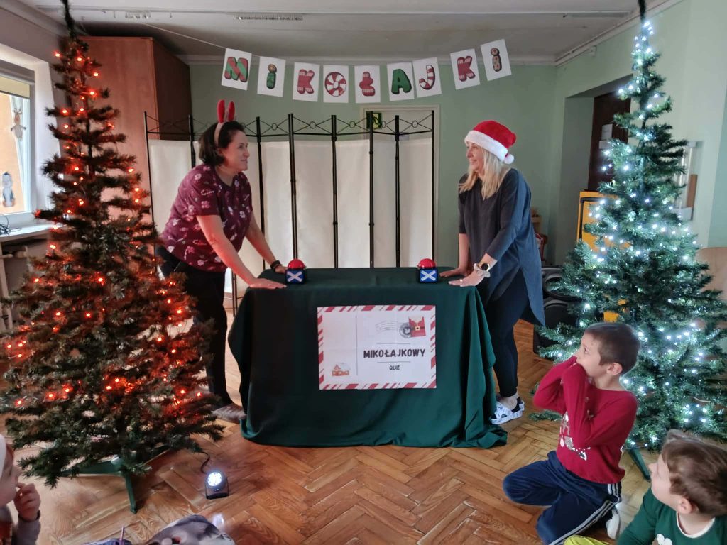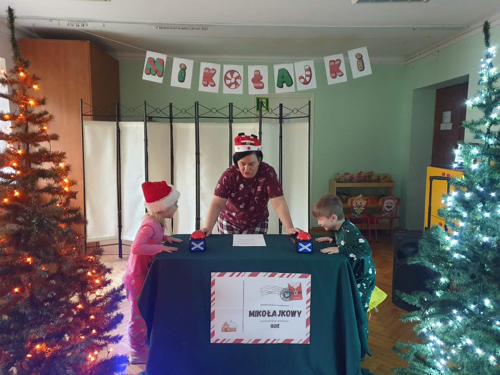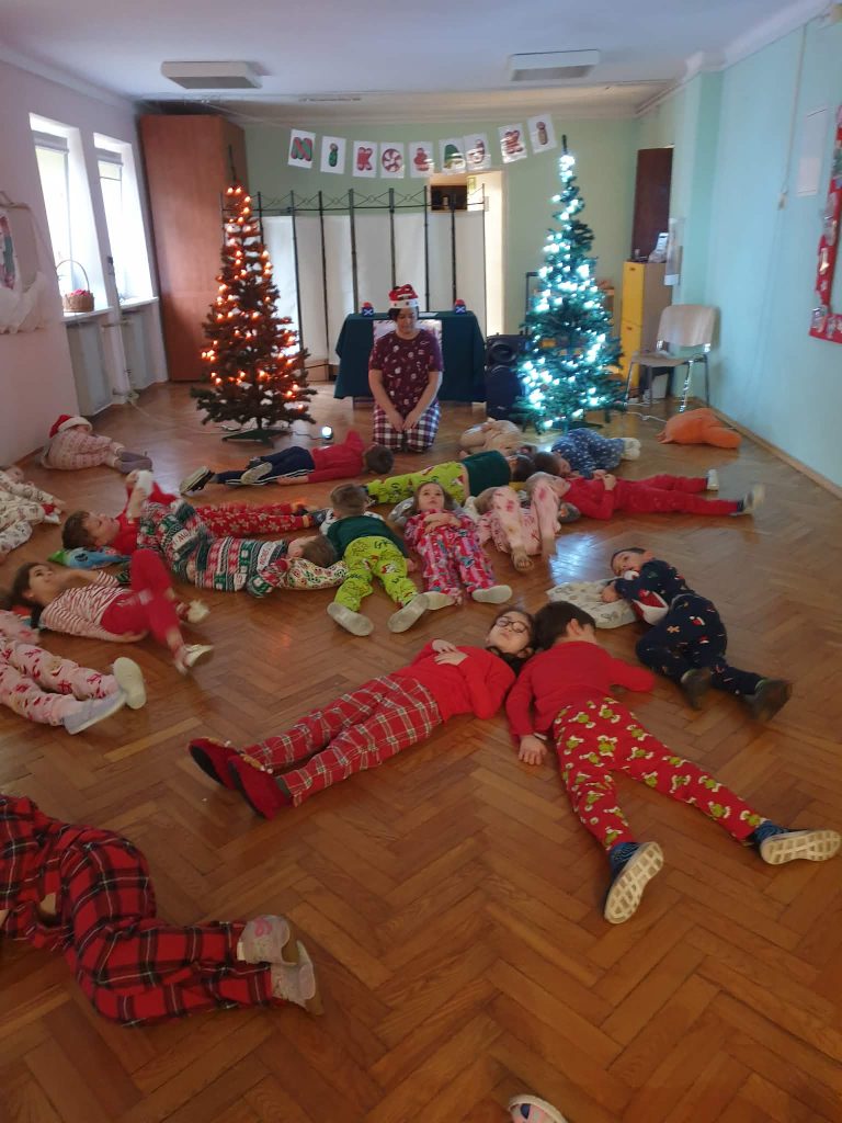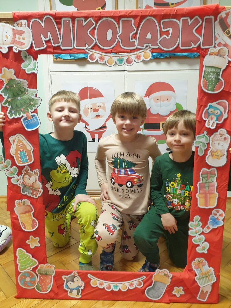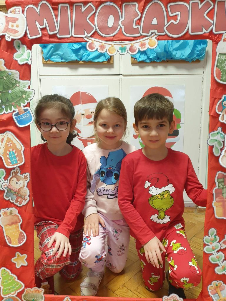 W naszej grupie i grupie V odbyły się w piątek (05.12.2025r.) wyjątkowe Mikołajki w formie radosnego piżama party. Dzieci przyszły do przedszkola w swoich ulubionych świątecznych piżamkach, przynosząc miękkie poduszki, które tworzyły przytulną, świąteczną atmosferę. Wspólne tańce wywołały mnóstwo śmiechu i energii, a muzyka szybko porwała wszystkich do zabawy. Dużym wydarzeniem był również podczas którego dzieci dumnie prezentowały swoje kolorowe stroje- piżamy. Nie zabrakło także kreatywnych zabaw ruchowych i integracyjnych, które umiliły ten wyjątkowy dzień. Piżamkowe Mikołajki przyniosły nam wiele radości i niezapomnianych wrażeń. To była naprawdę magiczna i pełna uśmiechów chwila w naszym przedszkolu!