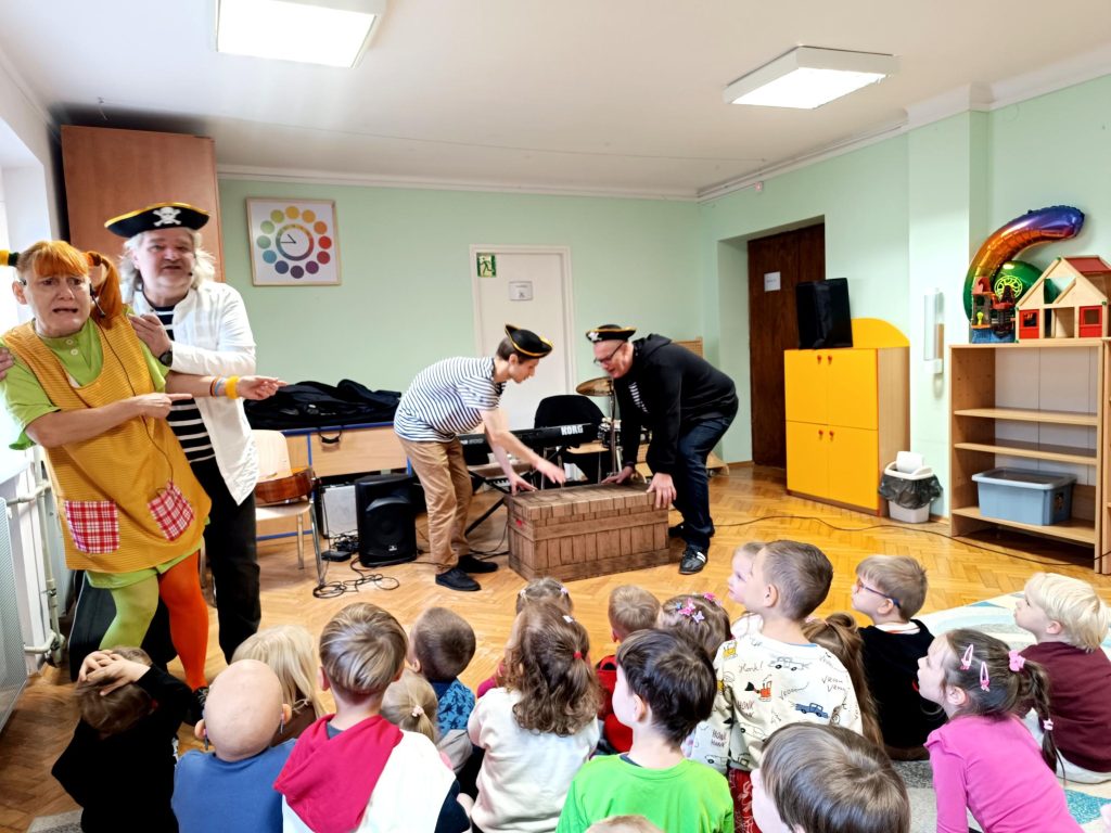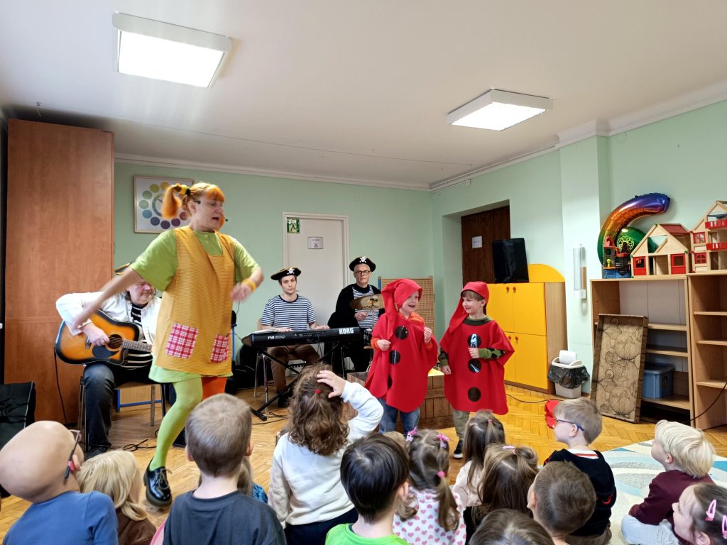 Bajkowa audycja muzyczna rozgrzała dziś całe przedszkole nawet Panie. Wspólnie śpiewaliśmy, tańczyliśmy i z niecierpliwością czekamy na kolejne muzyczne i teatralne przygody.