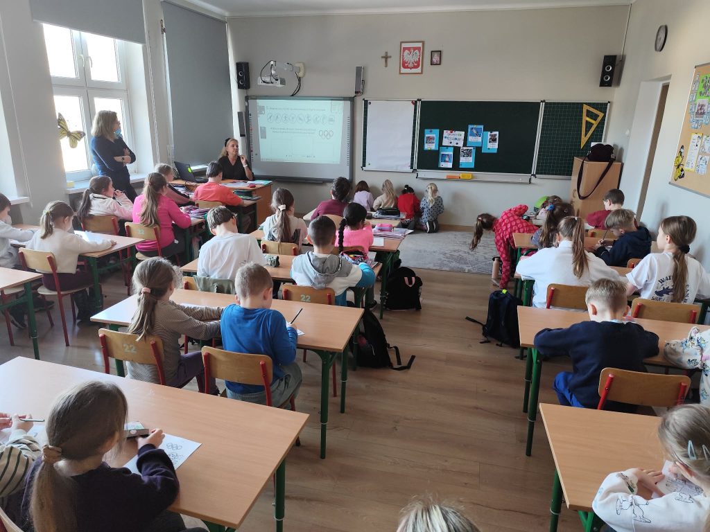 W piątek 20 lutego 2026 r. mieliśmy przyjemność uczestniczyć w zajęciach otwartych w klasa 3b w Szkole Podstawowej Nr 4 im. Sybiraków w Białymstoku. Na zajęciach rozmawialiśmy o sportach zimowych: poznaliśmy nazwy dyscyplin sportowych Igrzysk Olimpijskich oraz sławnych polskich olimpijczyków. Wspólnie tańczyliśmy i wykonywaliśmy prace plastyczne.
