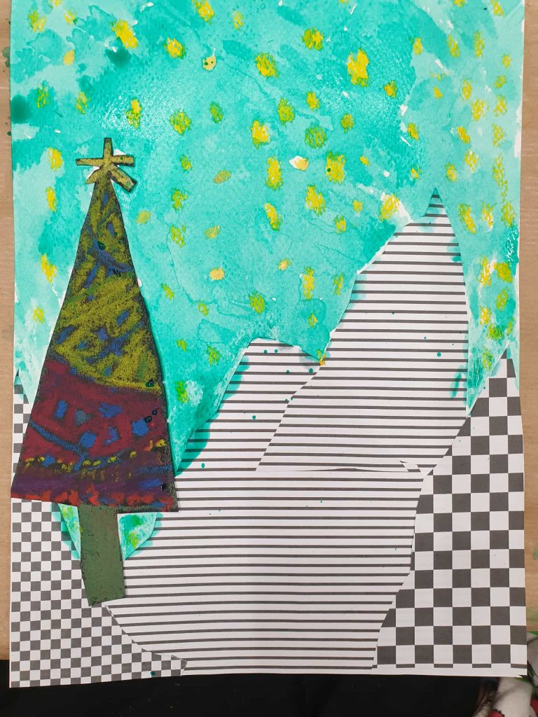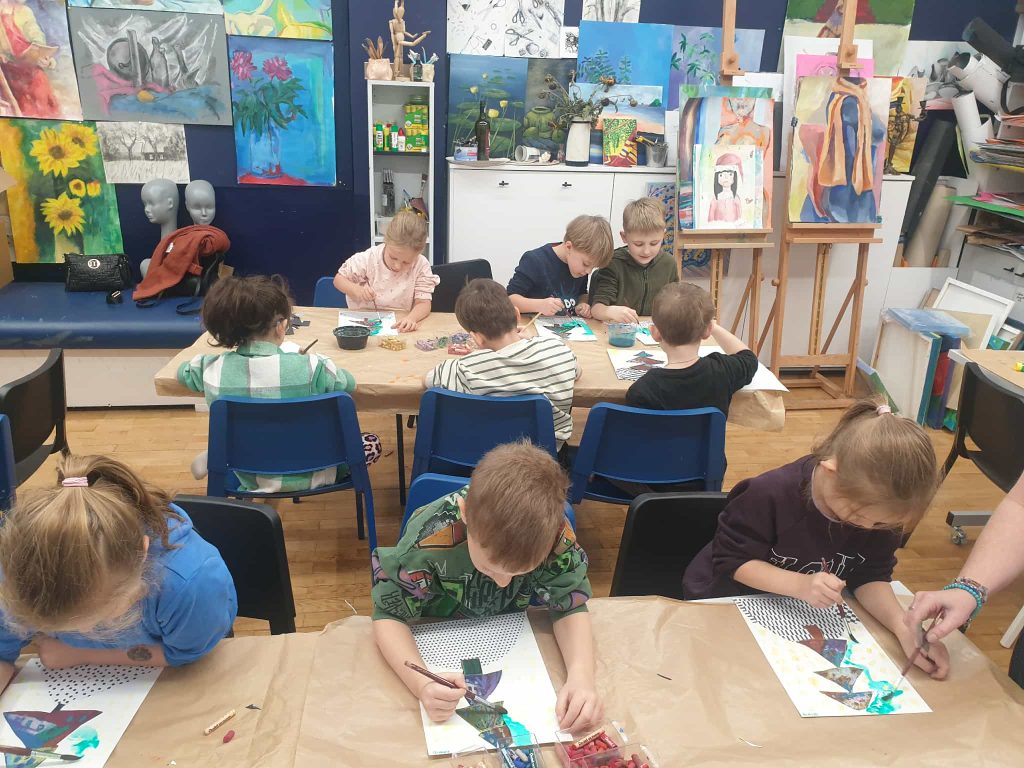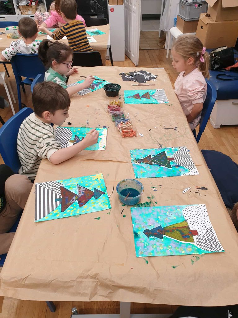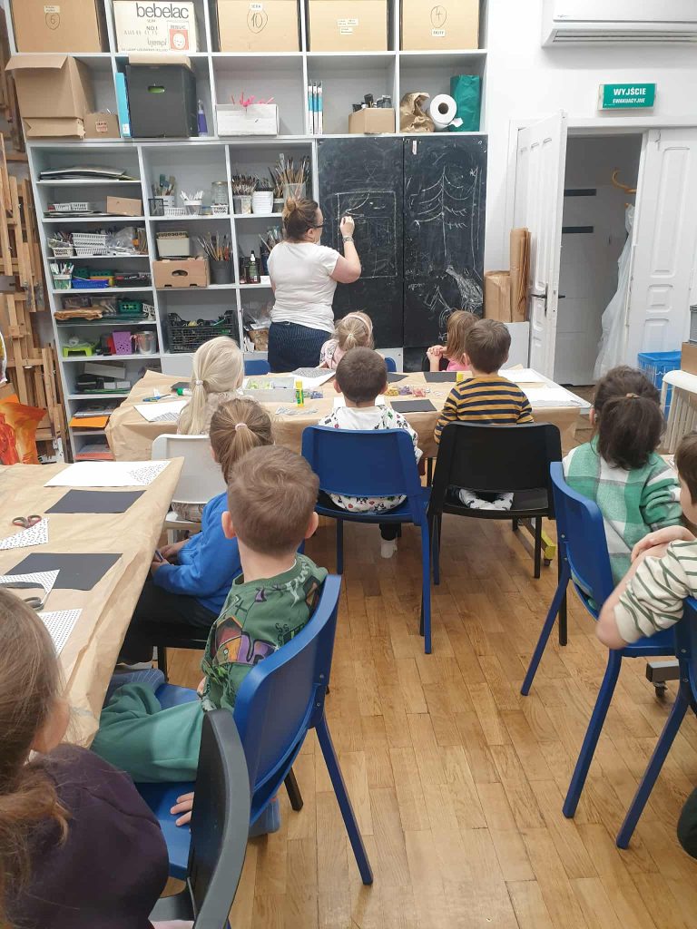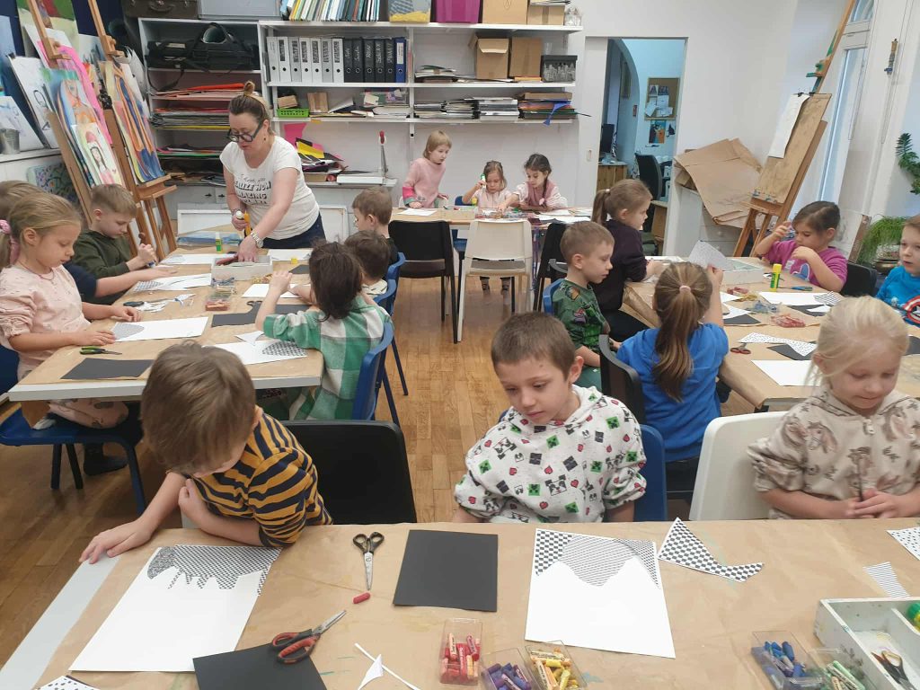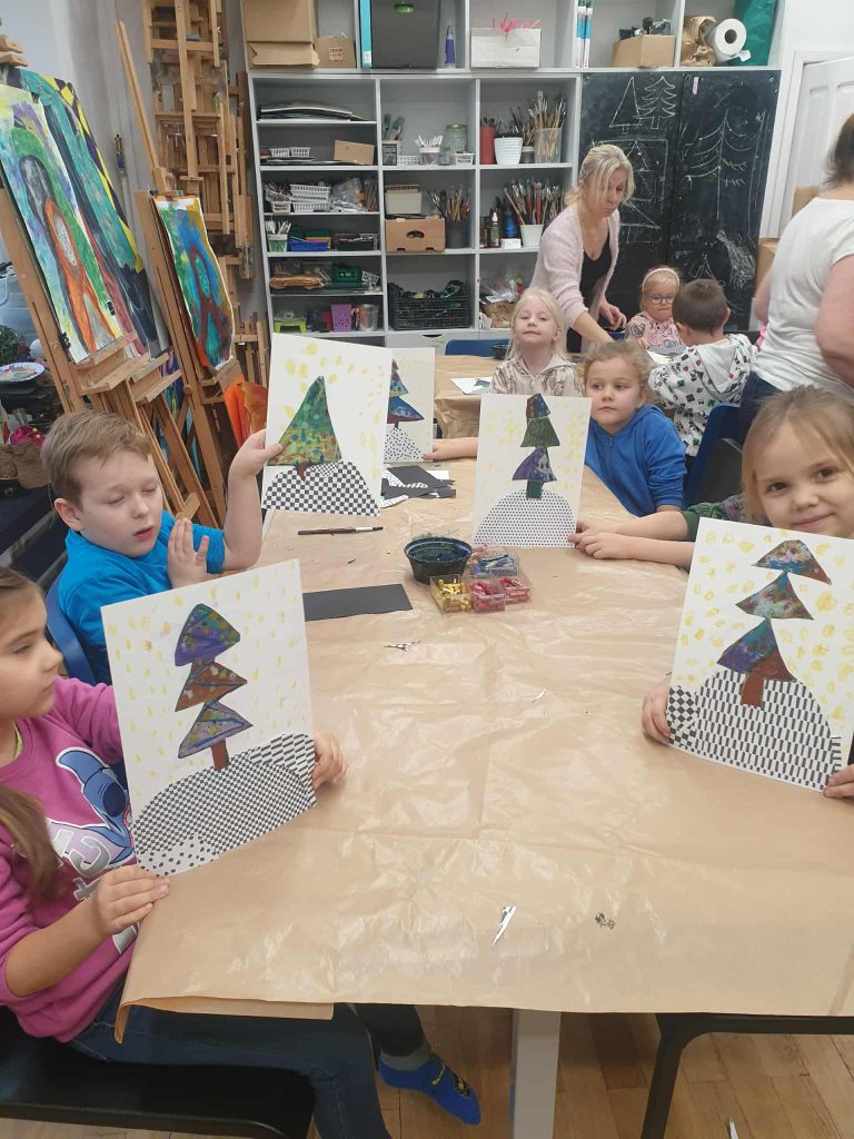 W tym tygodniu 03.12.2025r.( środa) uczestniczyliśmy w wyjątkowych warsztatach plastycznych w Galerii Sleńdzińskich. Podczas zajęć tworzyliśmy świąteczny zimowy  obrazek, wykorzystując pastele, papier graficzny oraz farby. Ćwiczyliśmy także wycinanie nożyczkami, doskonaląc naszą precyzję i sprawność manualną. Każdy z nas mógł samodzielnie zaplanować kompozycję swojej pracy. Tworzenie zimowego obrazka sprawiło nam dużo radości i pozwoliło poczuć magię zbliżających się świąt. Pracowaliśmy z dużym zaangażowaniem i dumą prezentowaliśmy efekty swojej twórczości. Warsztaty były dla nas inspirującym spotkaniem ze sztuką i okazją do rozwijania kreatywności.