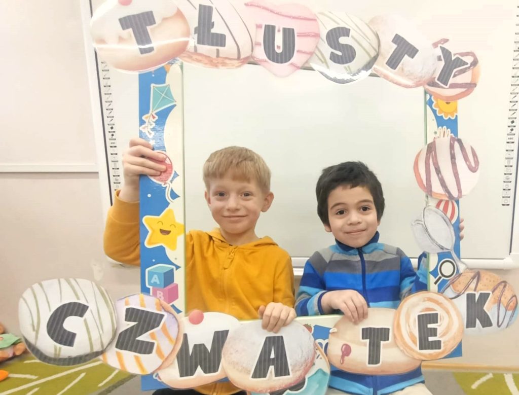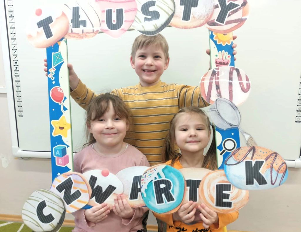 12.02.2026r. w bieżącym roku to Tłusty Czwartek. Przedszkolaki, w oparciu o prezentację multimedialną, poznały początki tej tradycji, samodzielnie wykonały cukiernicze działa sztuki, a na podwieczorek – tradycyjnie: PĄCZKI!!!