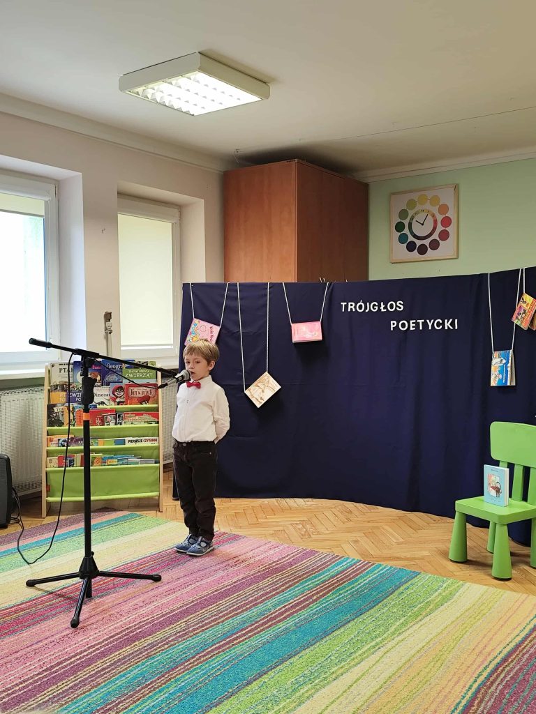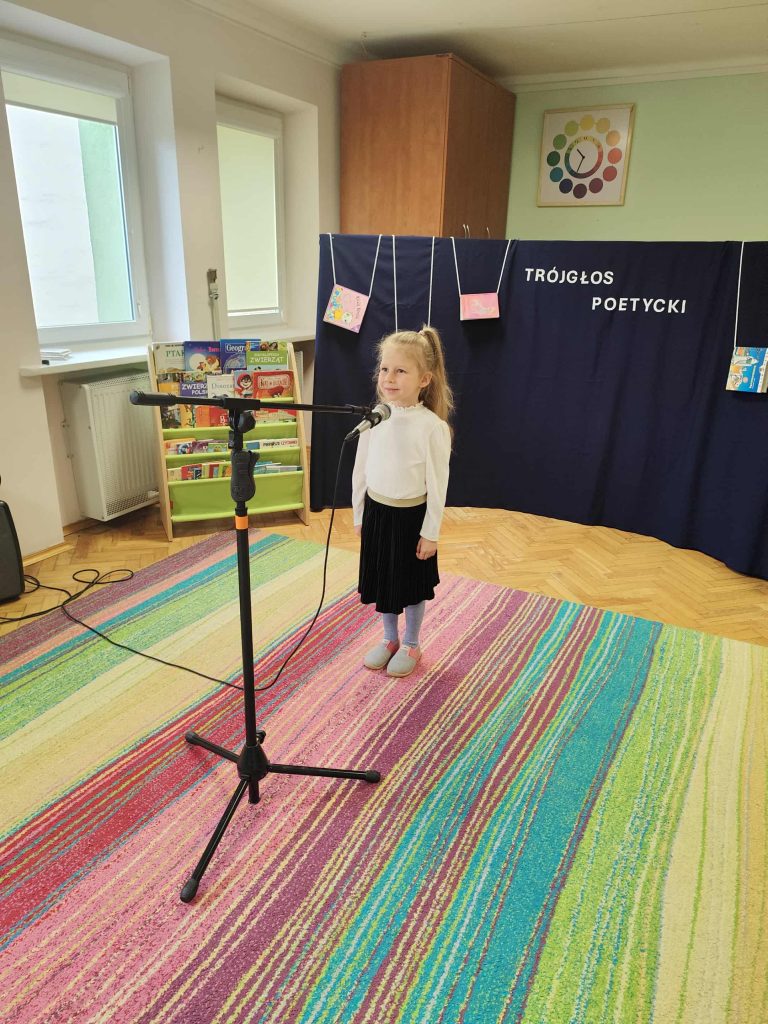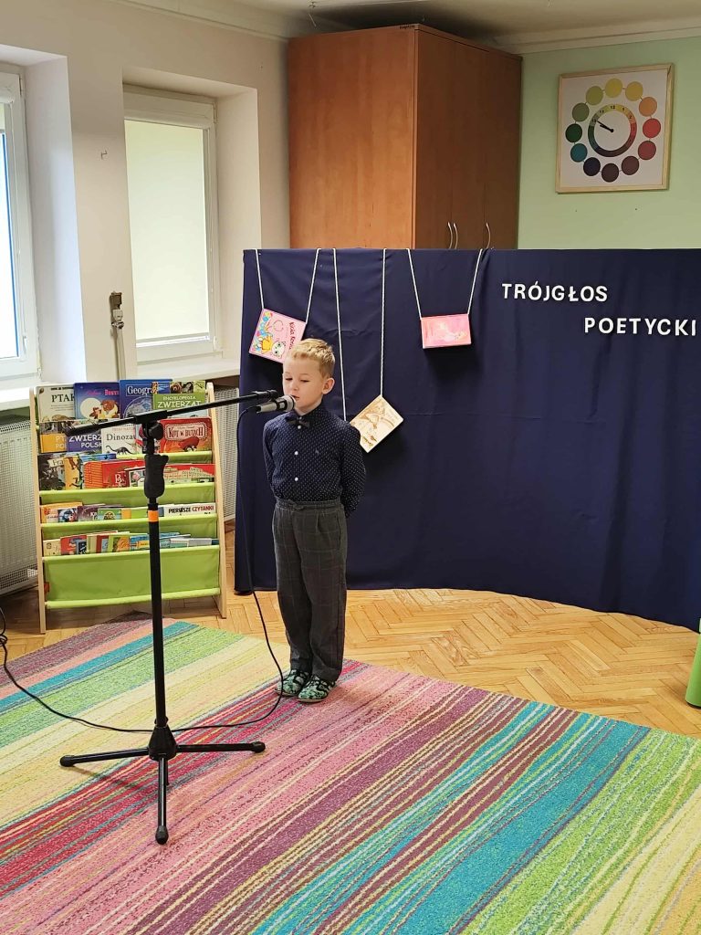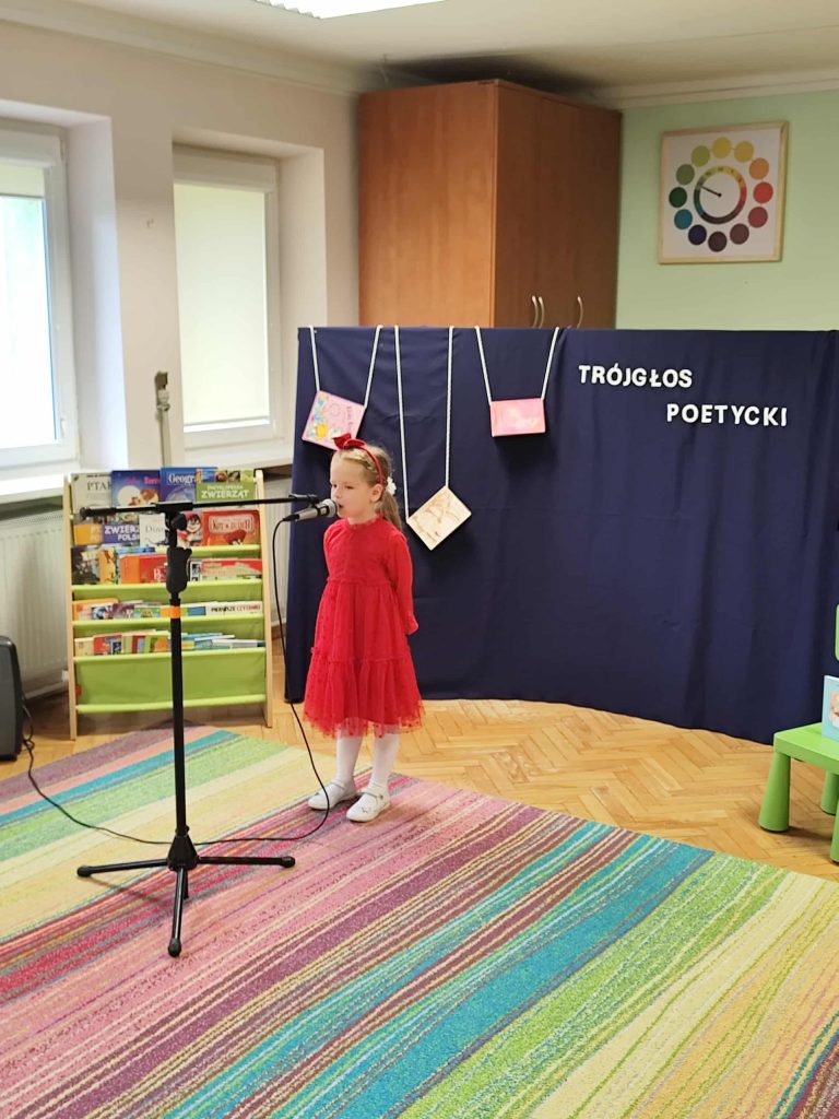 Dnia 16.10.2025r. odbyły się eliminacje przedszkolne konkursu recytatorskiego „Trójgłos poetycki”. W zmaganiach konkursowych wzięły udział dzieci z grup IV, V oraz VI, która z wielkim zaangażowaniem prezentowała swoje wiersze na scenie.