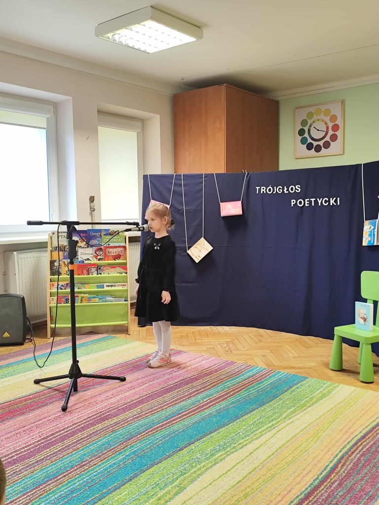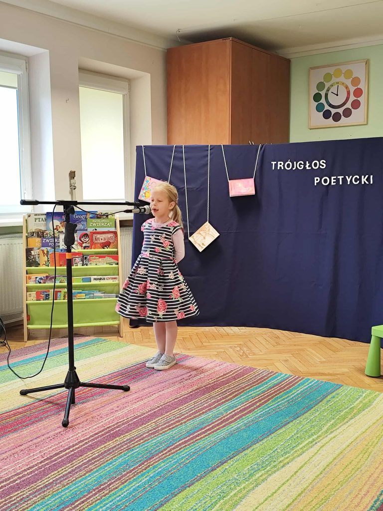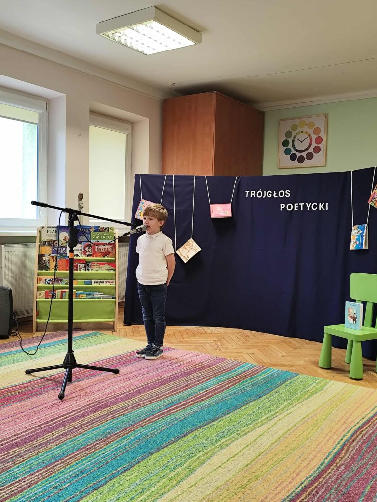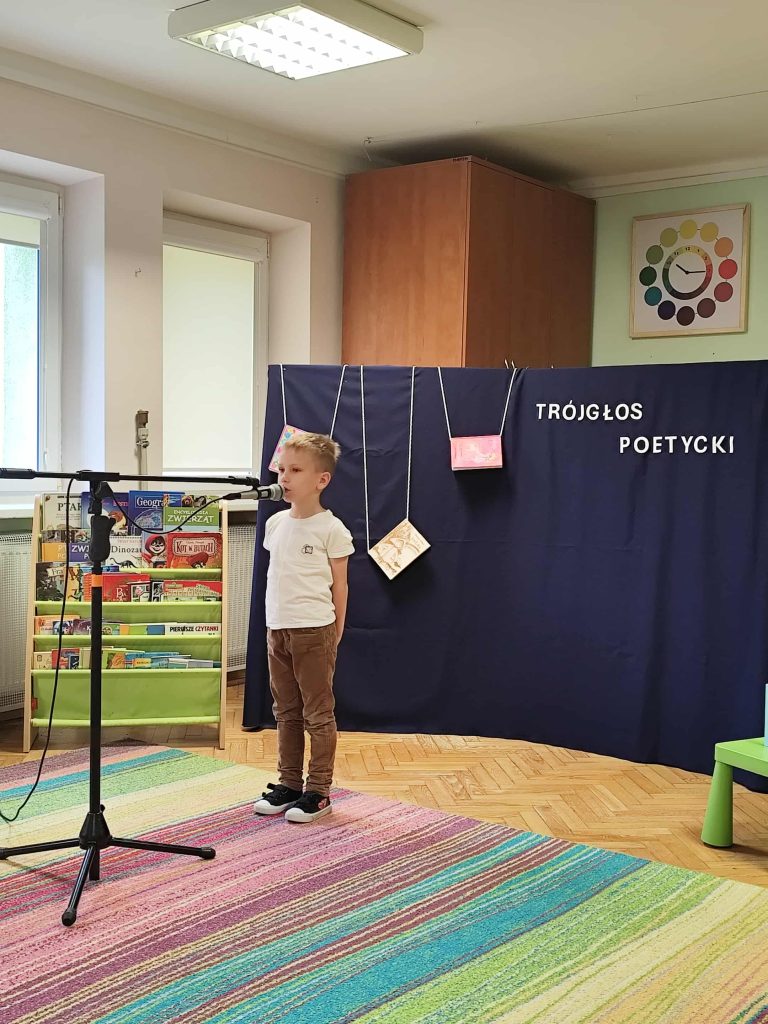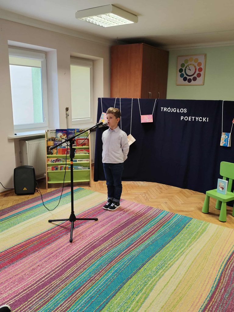 Dnia 16.10.2025r. odbyły się eliminacje przedszkolne konkursu recytatorskiego „Trójgłos poetycki”. W zmaganiach konkursowych wzięły udział dzieci z grup IV, V oraz VI, która z wielkim zaangażowaniem prezentowała swoje wiersze na scenie.