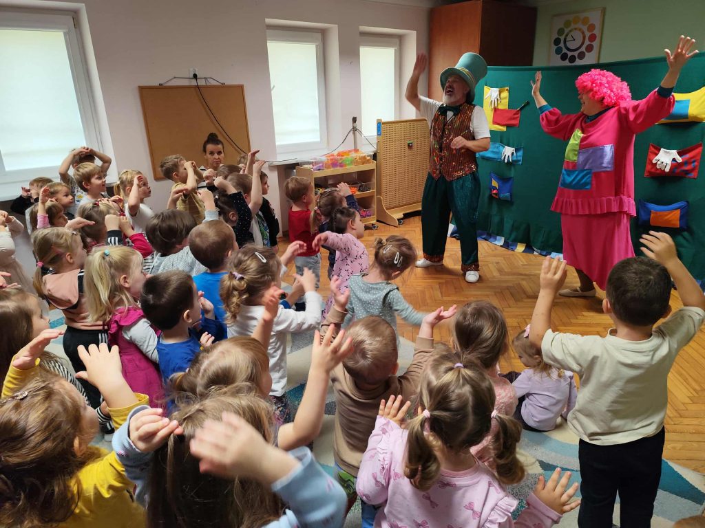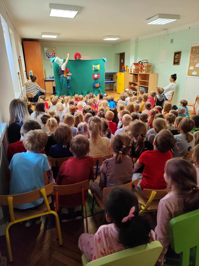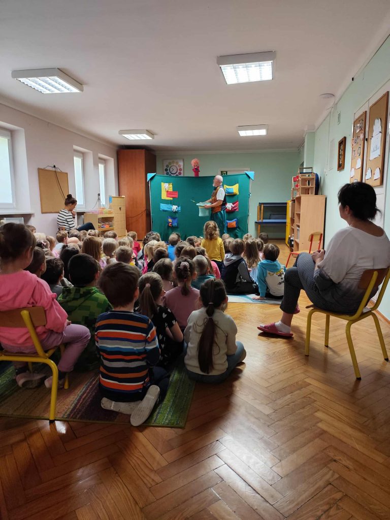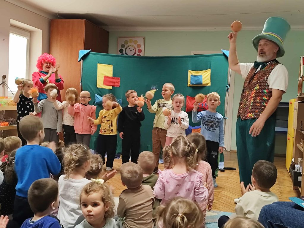 Dziś w naszym przedszkolu gościł Profesor Wyobraźni Hilary Szczebrzeszyński, który zaprosił dzieci w magiczną podróż na Archipelag Wysp Lalkowych. Uczestnicy zabawy przenoszą się na Wyspę Pacynek, gdzie zapoznają się z budową i sposobem animacji tego typu lalki. W spektaklu aktorzy odgrywają scenki z „Czerwonego Kapturka” Jana Brzechwy, historię przyjaźni pacynek Kropki i Kreski, uczestniczą w lalkowej klaunadzie. Przedstawienie ma charakter interaktywnej teatralnej zabawy.
