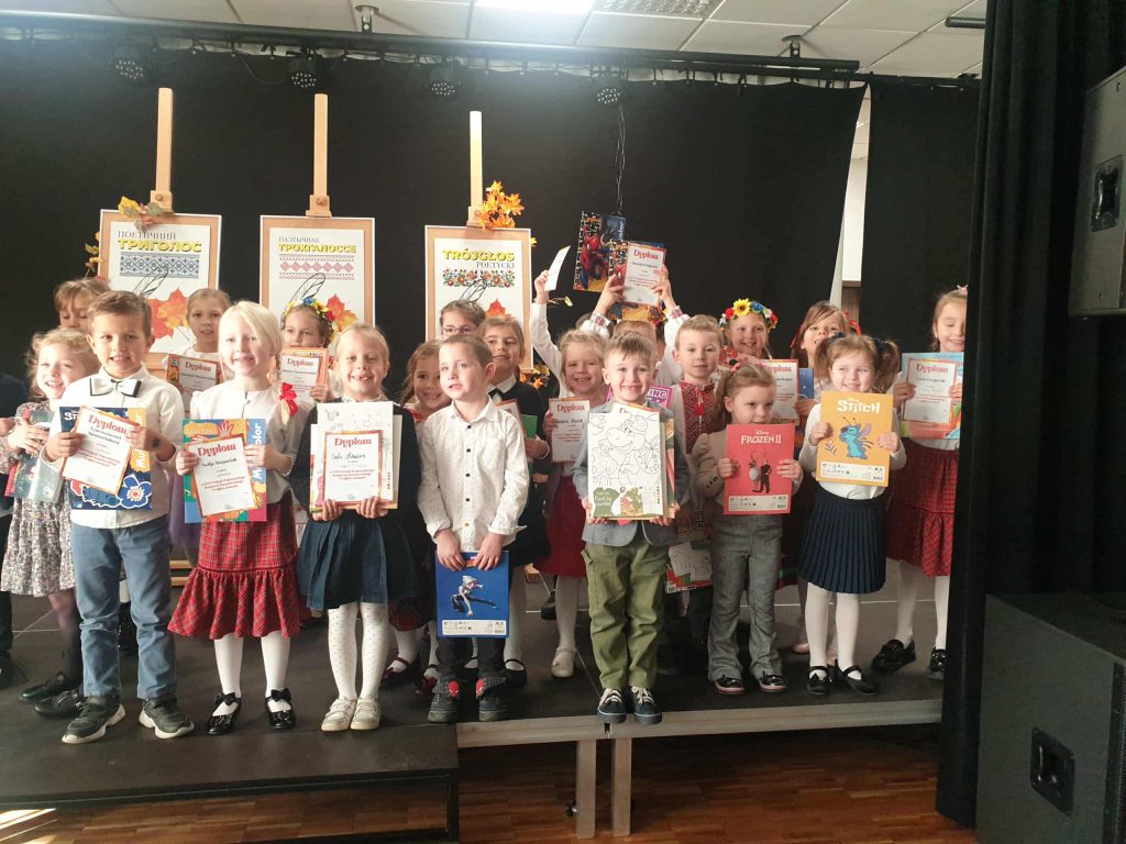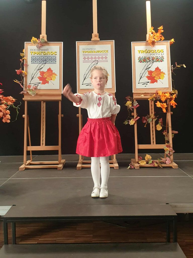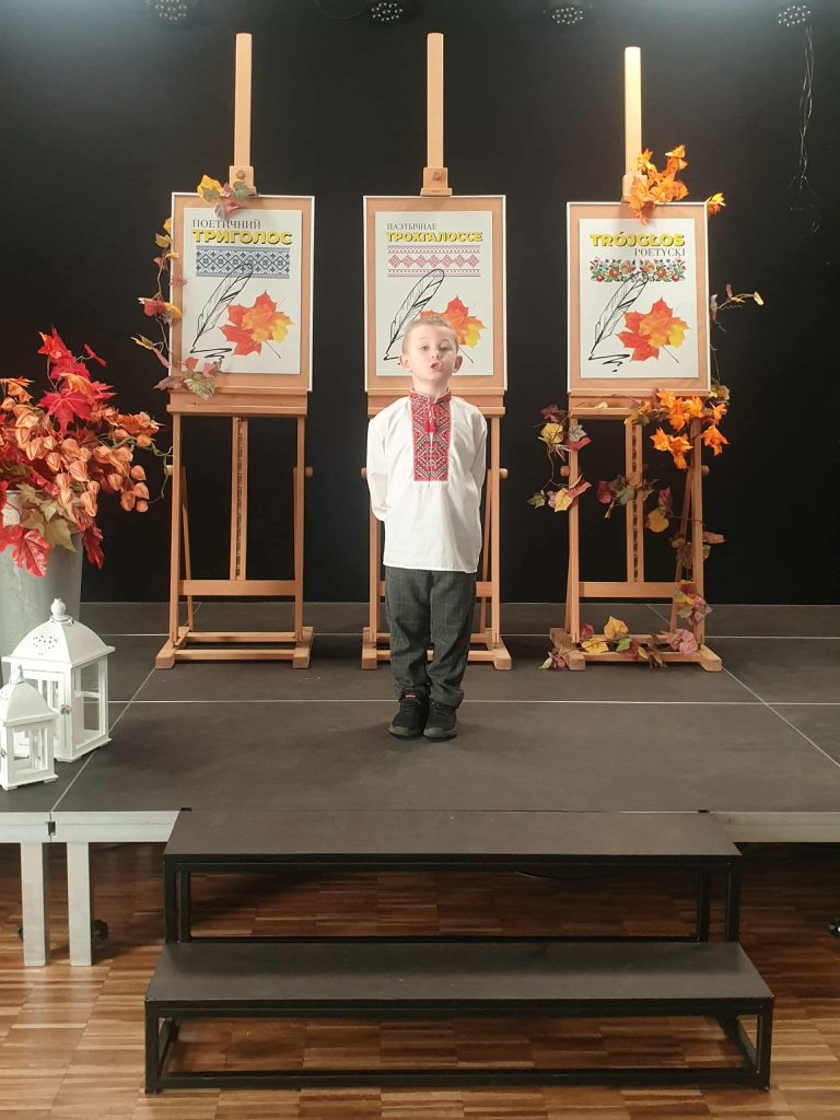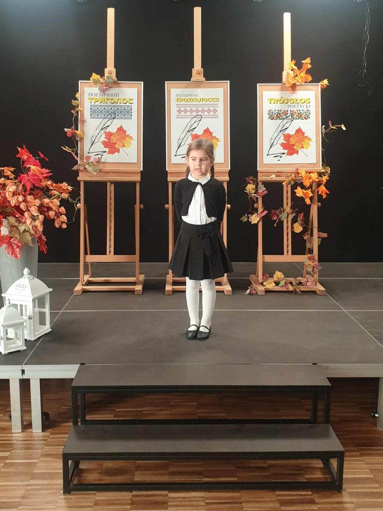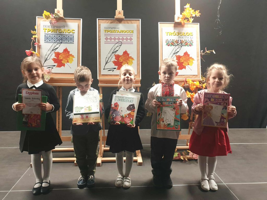 ” Trójgłos poetycki”. Celem konkursu jest wzajemne poznanie i próba zrozumienia odmiennej kultury dzięki pośrednictwu uniwersalnego języka- języka poezji. Każdy biorący udział w konkursie prezentował dwa wiersze- w języku polskim i w j. białoruskim, ukraińskim lub rosyjskim.