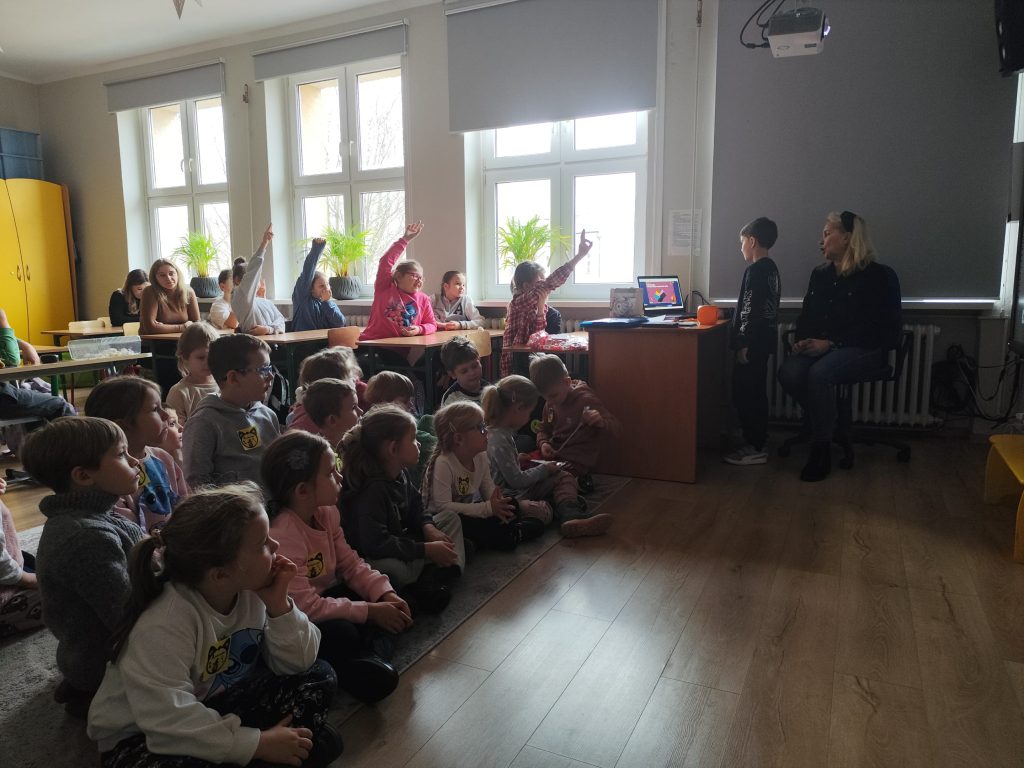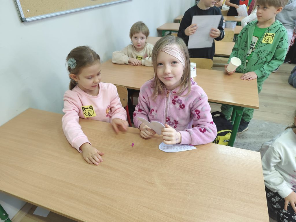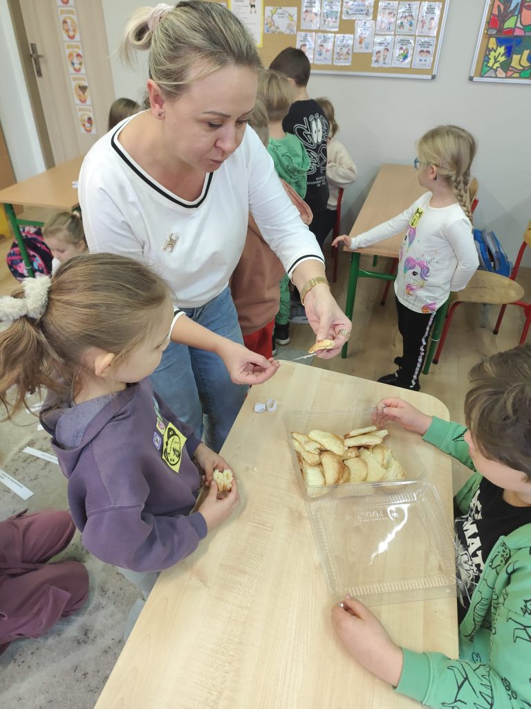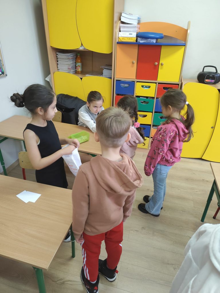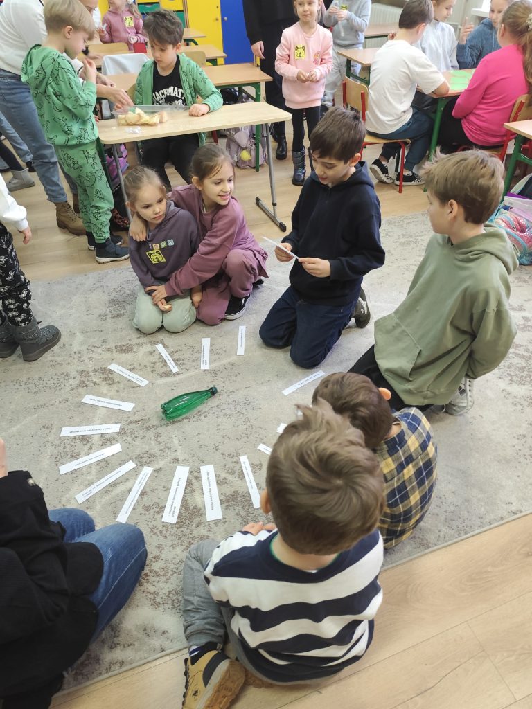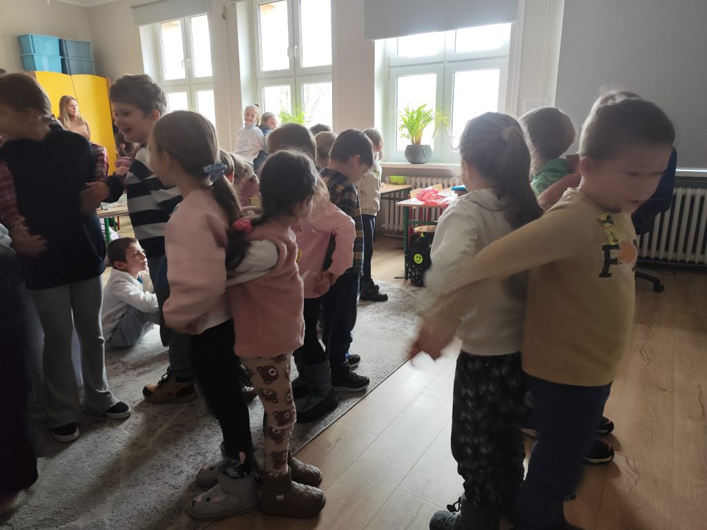 Zaraz po wczesnym śniadanku wybraliśmy się do sąsiadującej Szkoły podstawowej nr 4 im. Sybiraków do klasy III B na zabawy andrzejkowe. Ten dzień był dniem radosnych tańców przy muzyce oraz wróżb, dzięki którym dzieci mogły poznać swoją bliższą i dalszą przyszłość. Nie zabrakło takich zabaw jak: wróżenie z kart, wróżenia za pomocą wirującej butelki oraz ciasteczka z wróżbą. Wszyscy uczestnicy byli uśmiechnięci i zadowoleni.