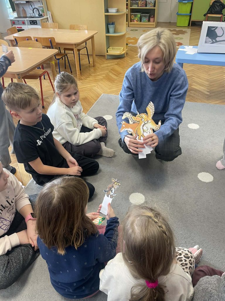 Podczas wizyty mieliśmy okazję obejrzeć teatr sylwet w języku białoruskim pt. „Hryziulka”. Przedstawienie bardzo spodobało się naszym przedszkolakom – z zaciekawieniem śledziły losy bohaterów. Była to doskonała okazja do osłuchania się z językiem białoruskim oraz poznania bajki w ciekawej formie.